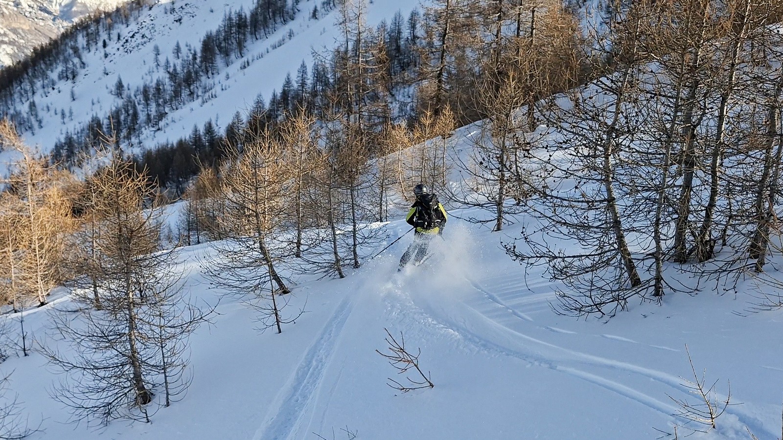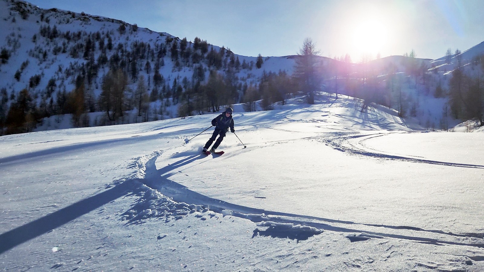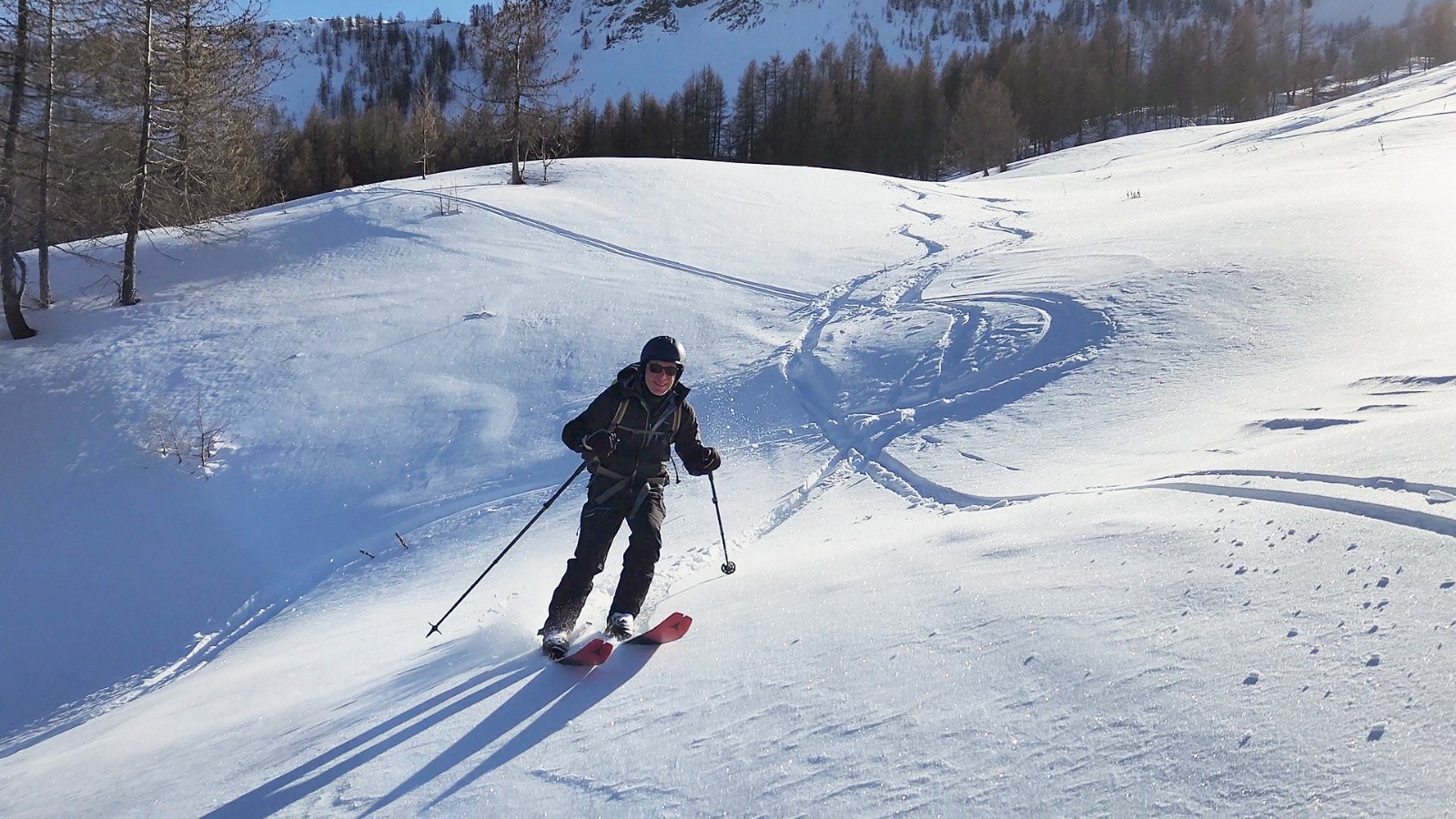 Ce vallon est de toute beauté et se prête vraiment au skirando, belles pentes continues du sommet à la voiture avec une bonne poudre sur les 500m du haut 👌