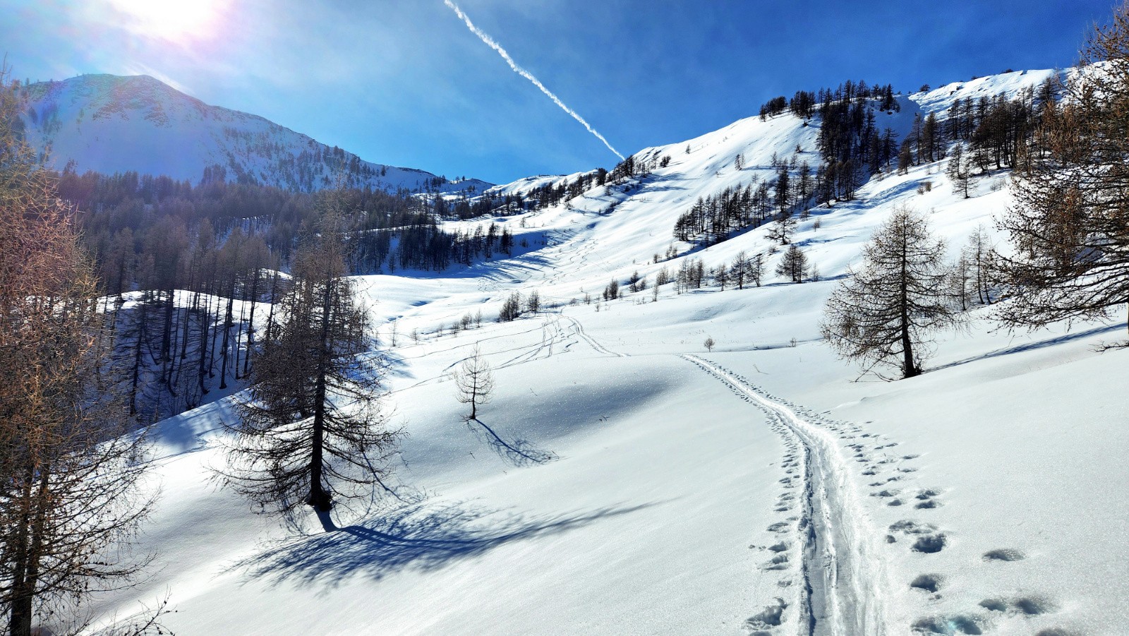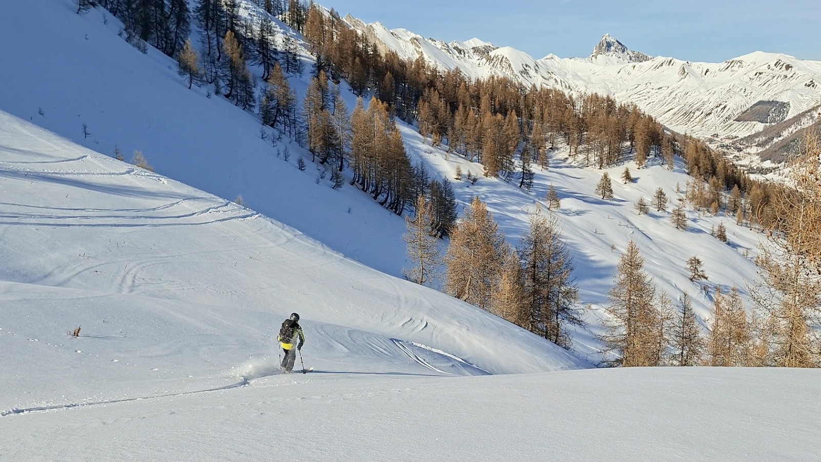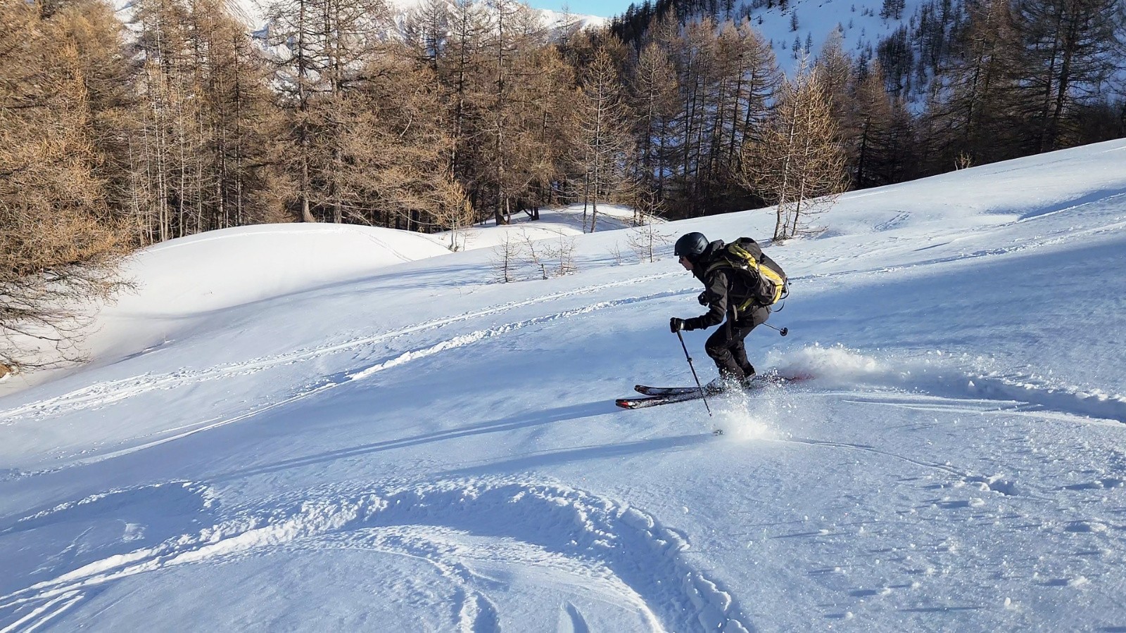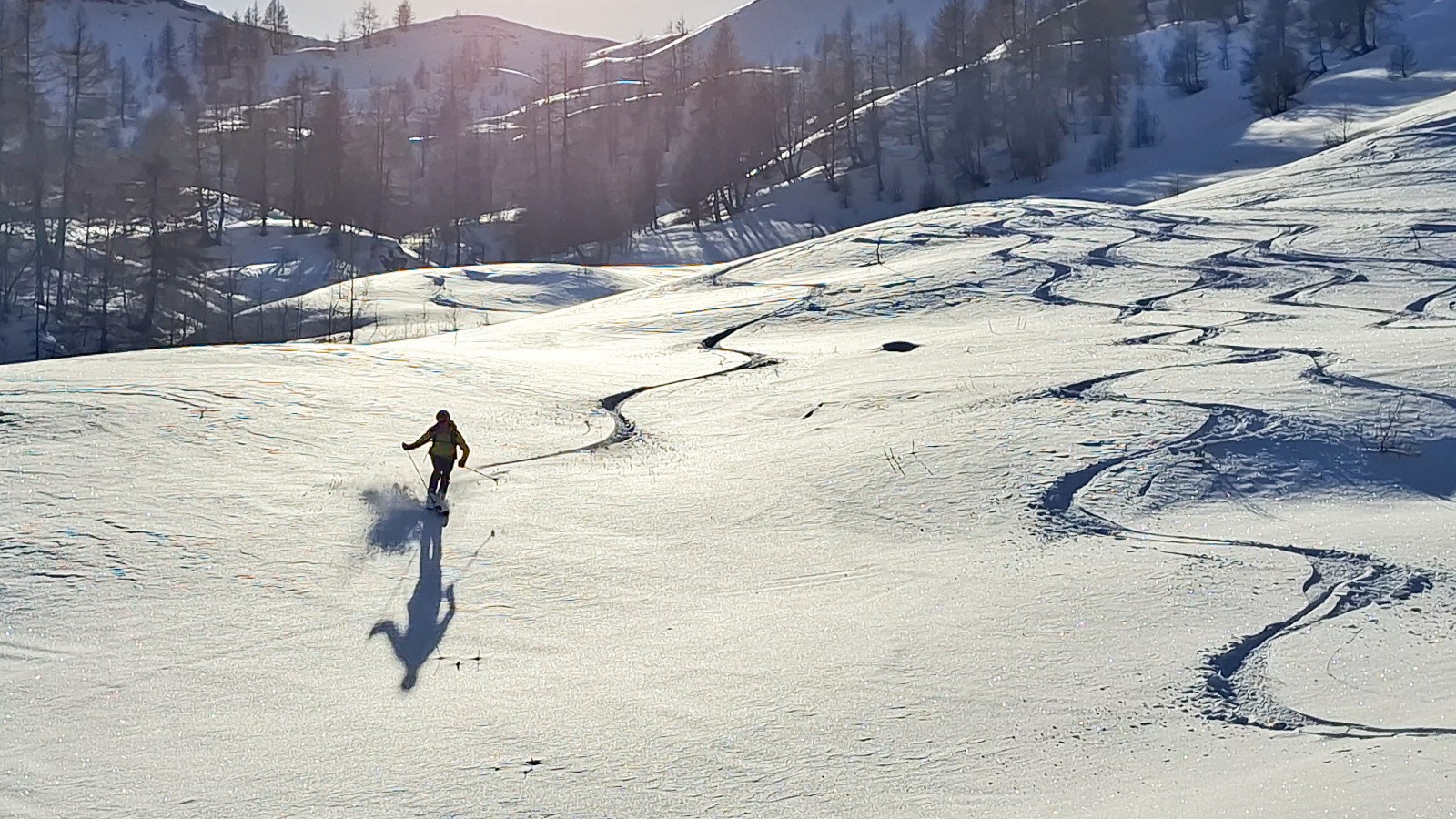 Ce vallon est de toute beauté et se prête vraiment au skirando, belles pentes continues du sommet à la voiture avec une bonne poudre sur les 500m du haut 👌