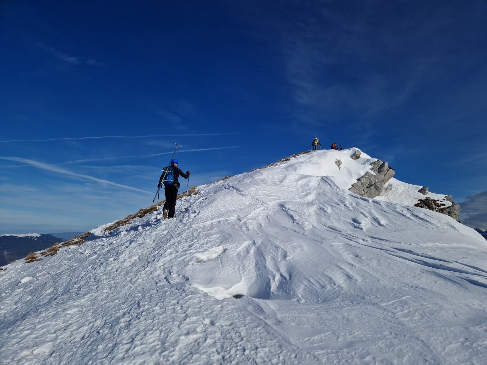 Itinéraire suivi : d'abord à ski dans la forêt puis montée à pied le long de l'arête S dont la partie inférieure est déneigée.