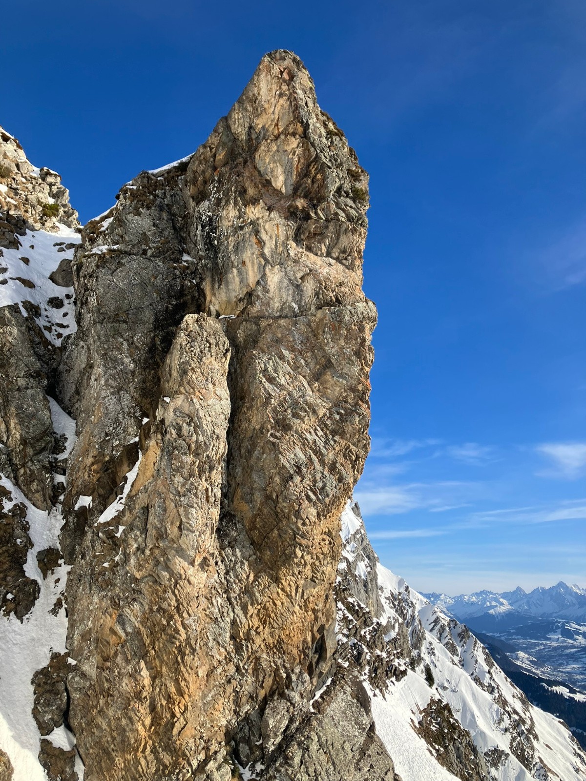 Rapidement on se rend compte que c'est sec et que le bas ne vaut pas le coup. On remonte et connecte astucieusement avec la nouvelle ligne. Belle montée (gaffe aux pierres), passage de mixte, arête et sommet. Incroyable.