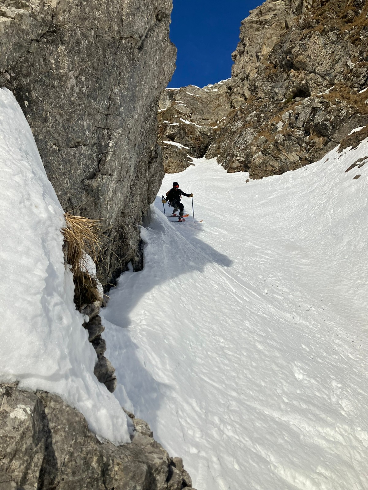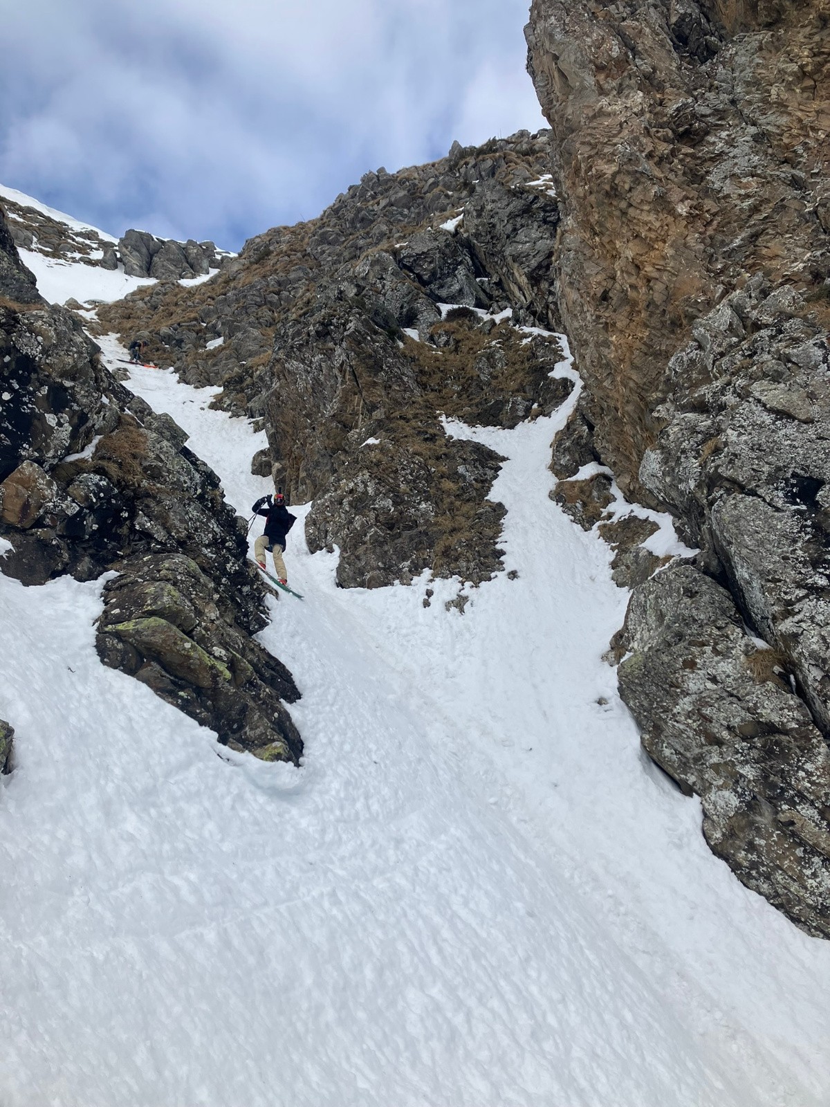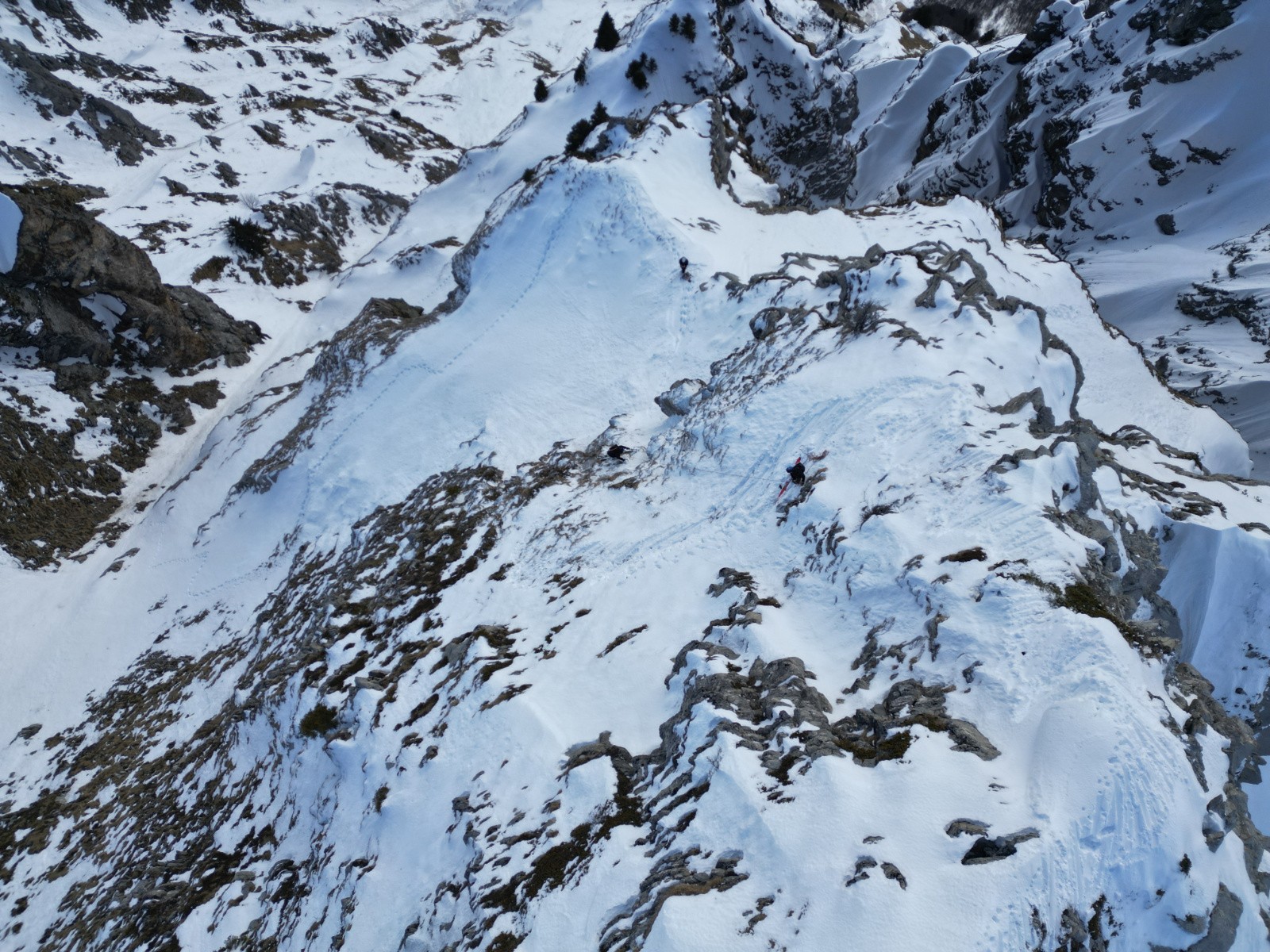 Ensuite ça déroule en bon ski, mais la ligne n'est pas évidente et le repérage drone aide beaucoup. Notamment en sortie où il ne faut pas se louper pour chopper le bon mixte herbeux.