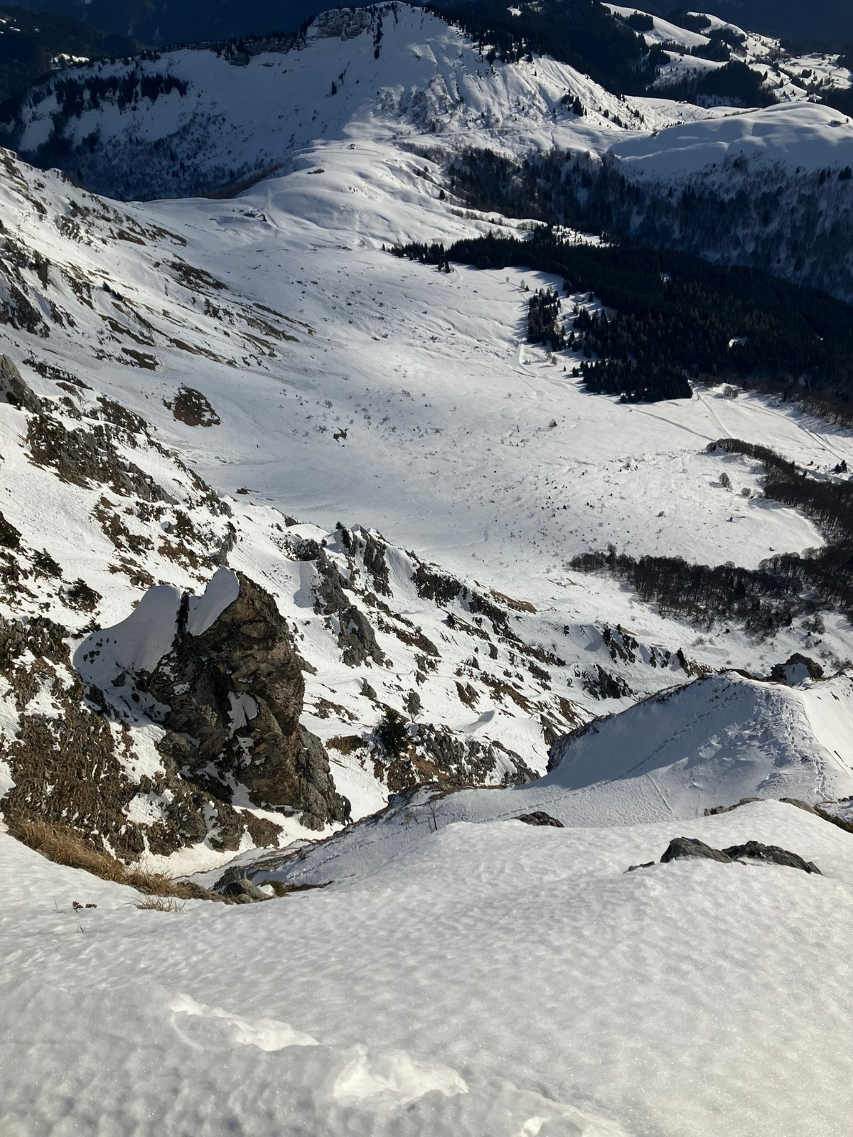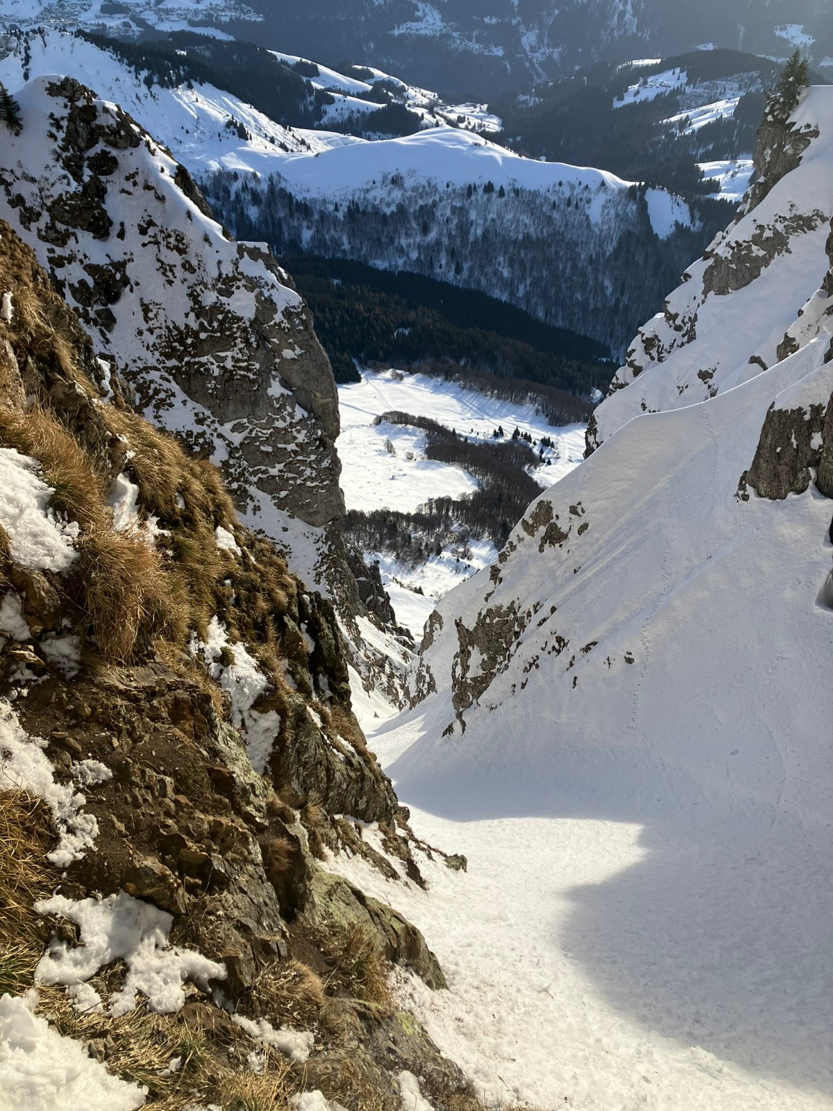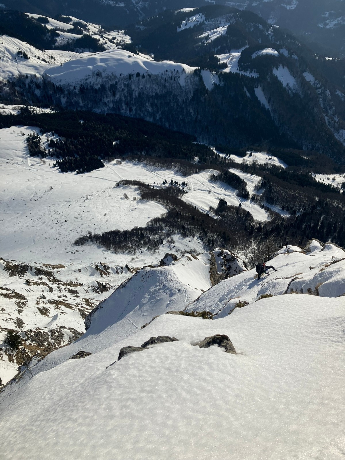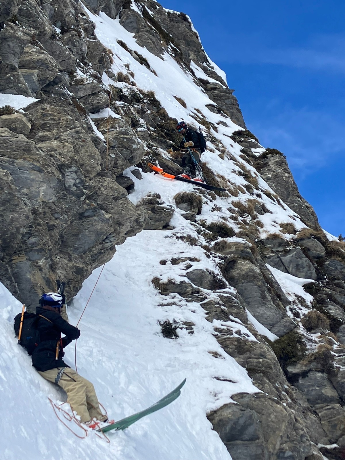 Ensuite ça déroule en bon ski, mais la ligne n'est pas évidente et le repérage drone aide beaucoup. Notamment en sortie où il ne faut pas se louper pour chopper le bon mixte herbeux.