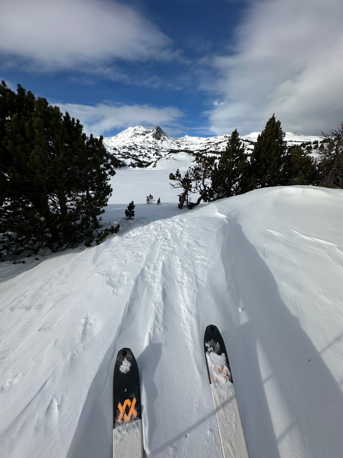 Itinéraire suivi : depuis le haut du domaine skiable de Formiguères, remontée de la Serra de Mauri, descente au refuge et traversée des Camporells jusqu’au Pic de Mortiers. Retour même itinéraire