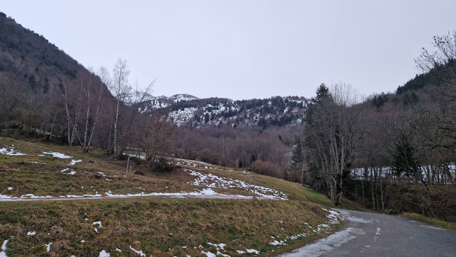 Itinéraire suivi : piste forestière pour accéder à la "face nord". montée à pied jusqu' aux barbelés. la meteo et l'enneigement ne nous poussent pas à aller plus loin. en descendant, on trouve quelques plaques de neige plus contiguë. meilleure dans la foret sur le chemin(entre quelques passages en feuilles).