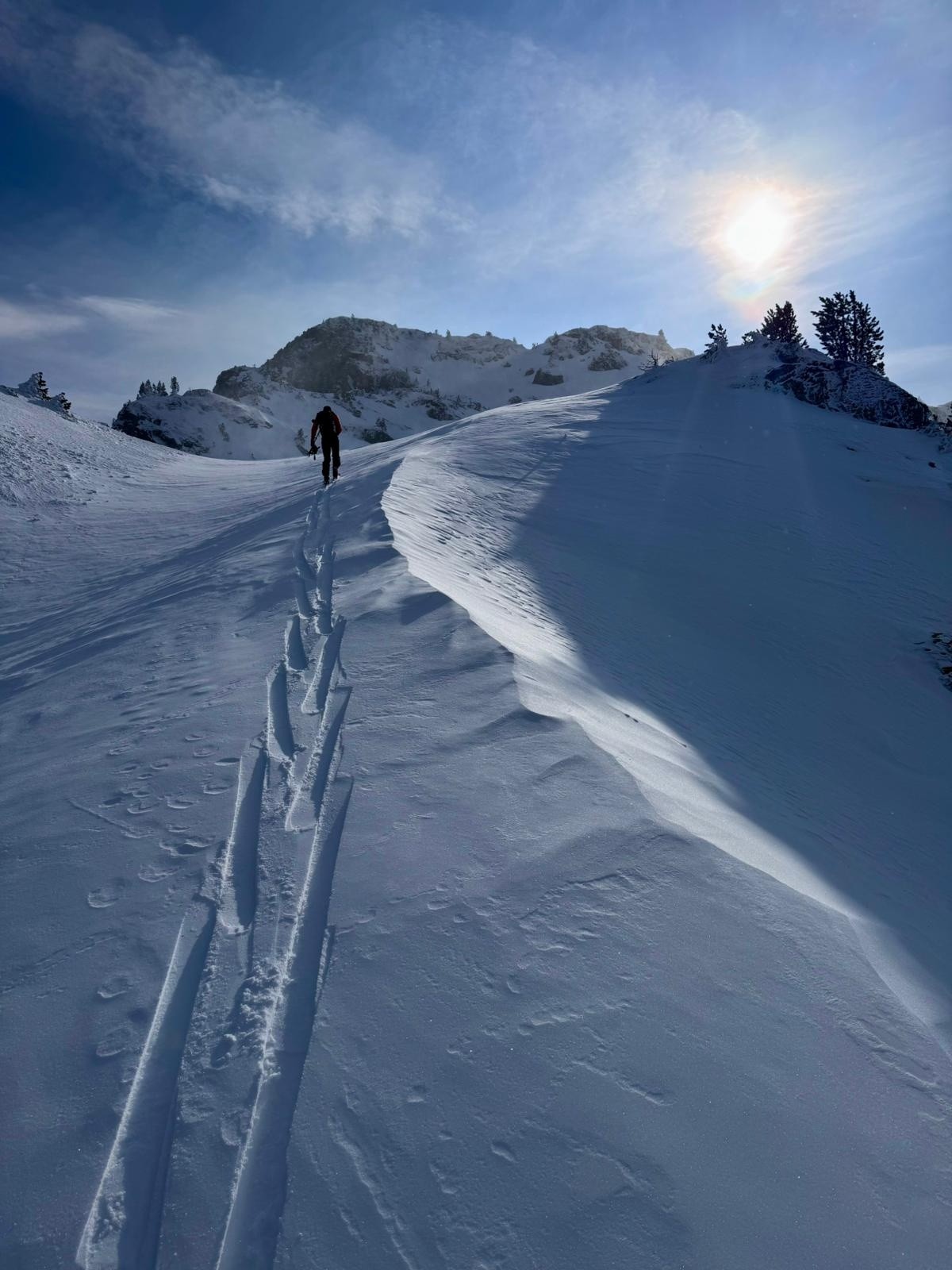 Descente vers 1900 dans une neige en poudre mi-lourde sur le haut, cartonnée par la suite. C'est plutôt bon donc on repeaute pour aller découvrir le passage du fort. Montée agréable avec des soufflantes qui limitent la surchauffe.