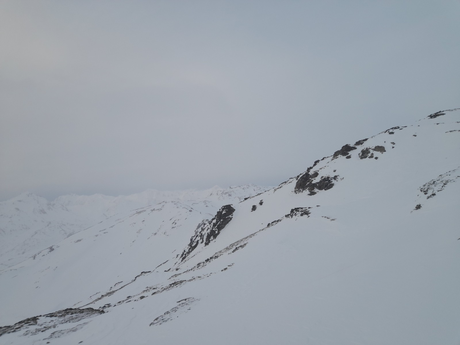 Conditions pour le ski : Bof, mais univers sauvage, pas mal de traces de montées et descentes, neige carton, pas réussi à trouver une pente qui en valait la peine !