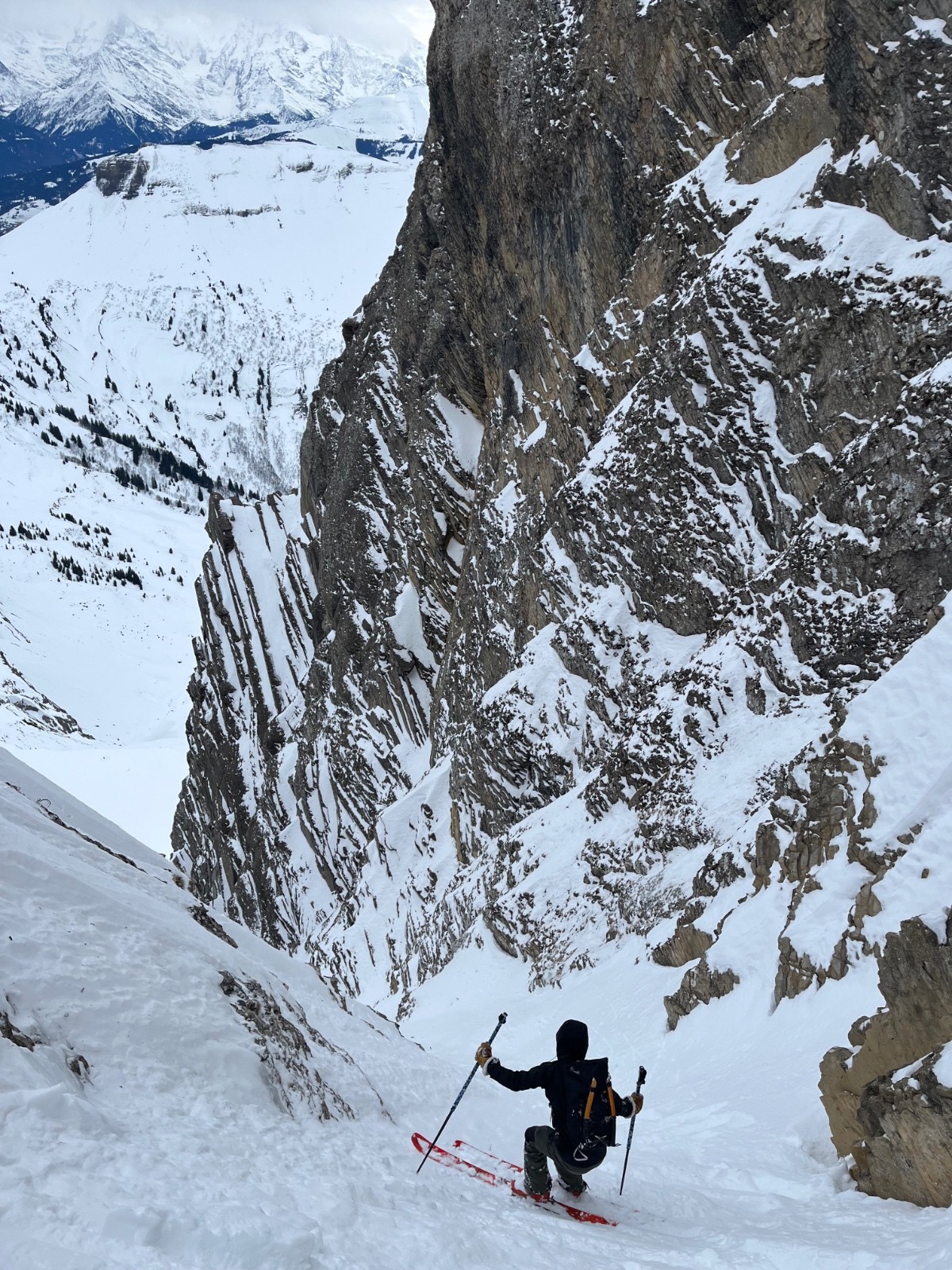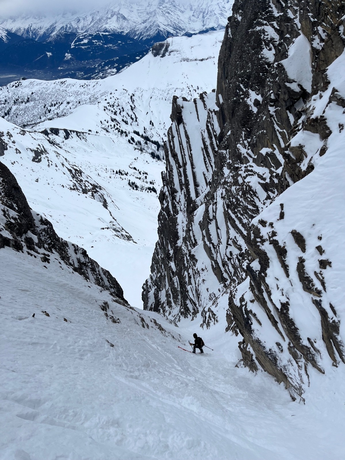 Les fabuleuses conditions de ces derniers jours ne sont plus. Montée au trou en neige froide mais compactée, descente du passage du père pas fantastique (neige compactée, rares passages de neige plus souple); couloir archi sec, neige pas si mal car abritée du vent mais pas trop de place pour tourner. Combe de la grande forclaz assez abritée d’où un ski assez plaisant ; et enfin la grande traversée jusqu’au pk en poudre très très réchauffée