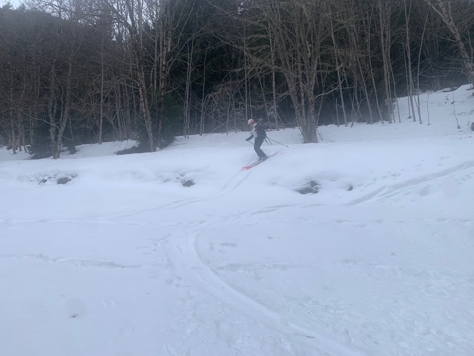 Conditions pour le ski : le border en forêt commence à être en mauvais état. Ça passe tout en ski à la montée, un déchaussage à la descente. Pas de regel cette nuit et tant mieux, le border est facile à skier.