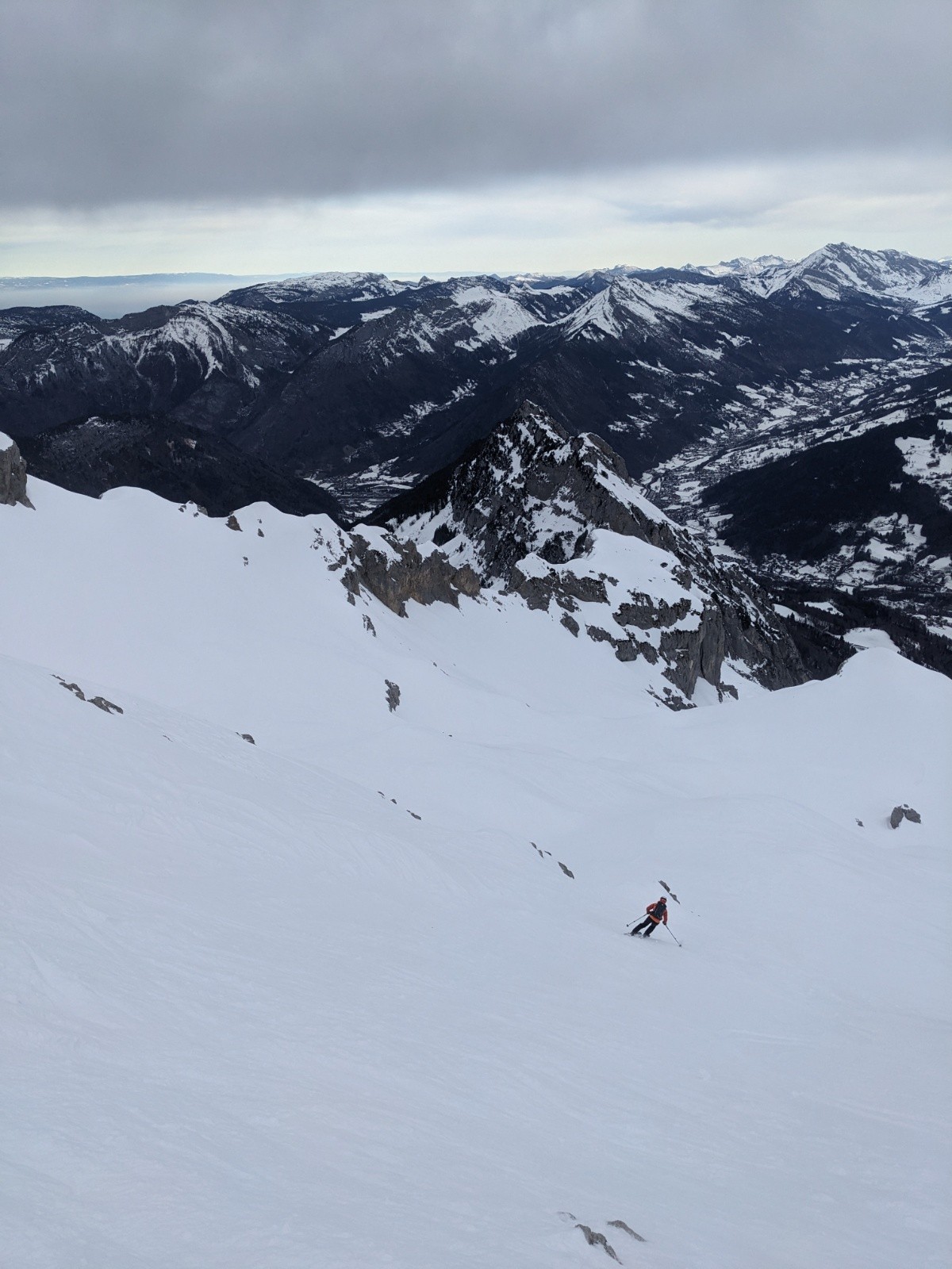 Classique tour du massif de la Tournette en vélo avec AR au sommet en ski. Vélo bien agréable ce matin avec de belles lumières. Partir un peu plus tôt aurait été une très bonne idée, mais je le savais pas encore... Le plan était d'aller a la pointe sud par son arrête mais le vent m'a fait changer d'objectif... Ça sera une simple Tournette. Comme tous les cyclistes, j'aime pas le vent...