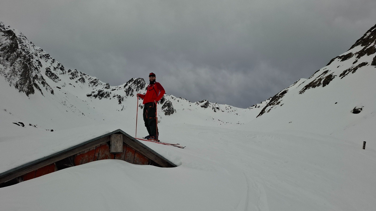 Sur le toit du chalet devant le col du Merlet