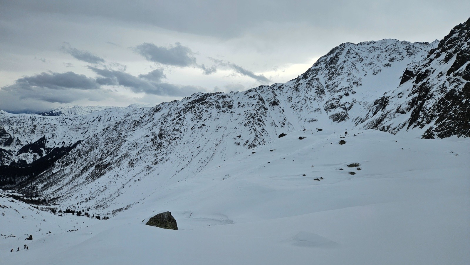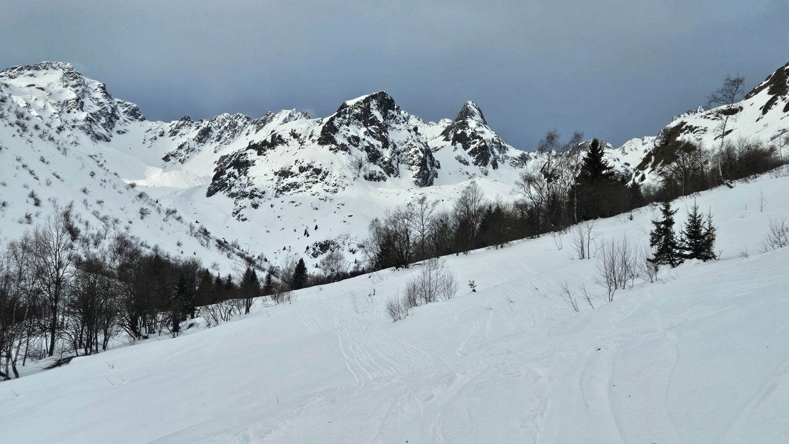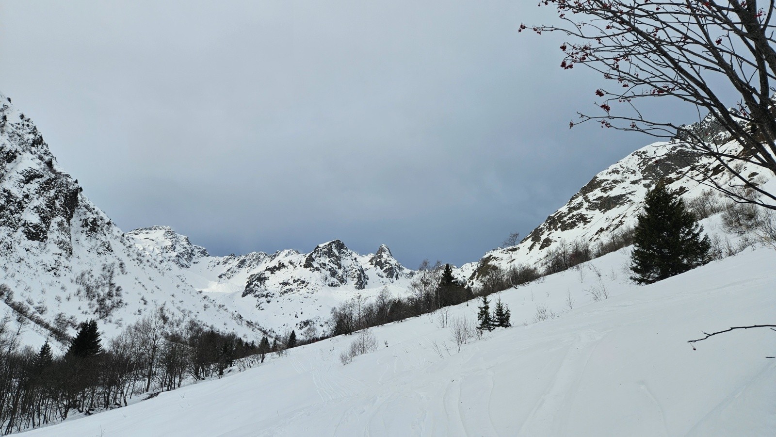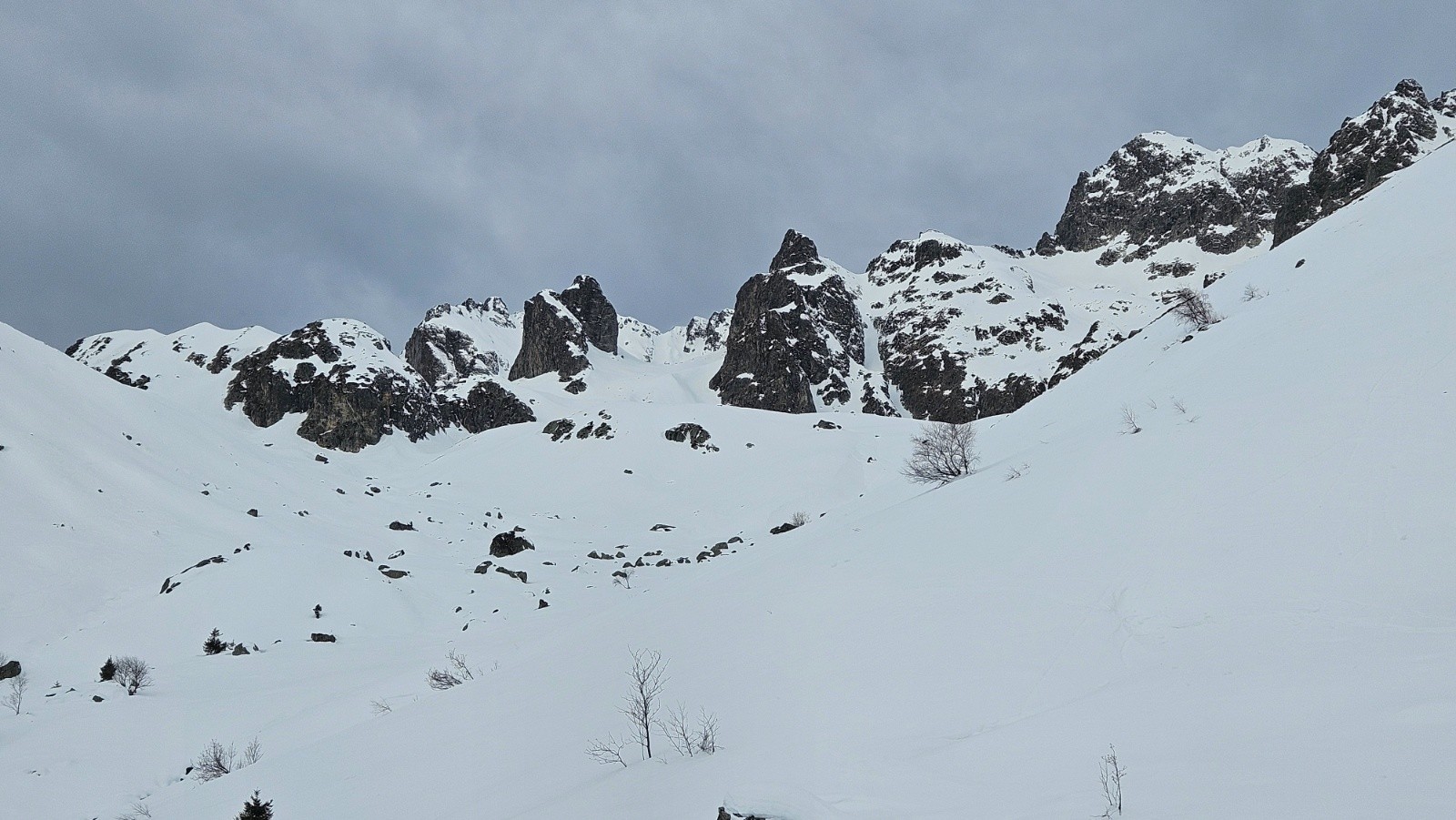 Après des conditions de neige bien meilleures qu'espérées samedi aux 7Laux, va pour cette belle course dans l'Envers de Belledonne, en choisissant pour la descente le vallon des Roches, en espérant y trouver des restes de poudres préservés du vent et du soleil.