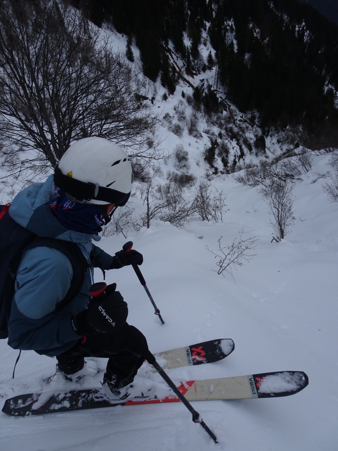 - du sommet jusqu’à 1600m (route forestière) super poudre sur toutes les faces qui ne voient pas le soleil ou avec une inclinaison qui permet juste son affleurement, sinon croute !