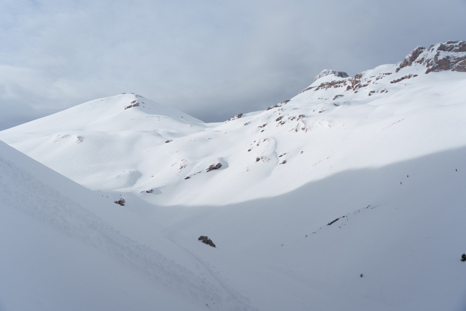 Au lieu de descendre à droite comme nous (orientation gauche/droite à comprendre depuis le sommet), on pouvait aussi rester vers la gauche (comme eux) pour plus profiter des pentes