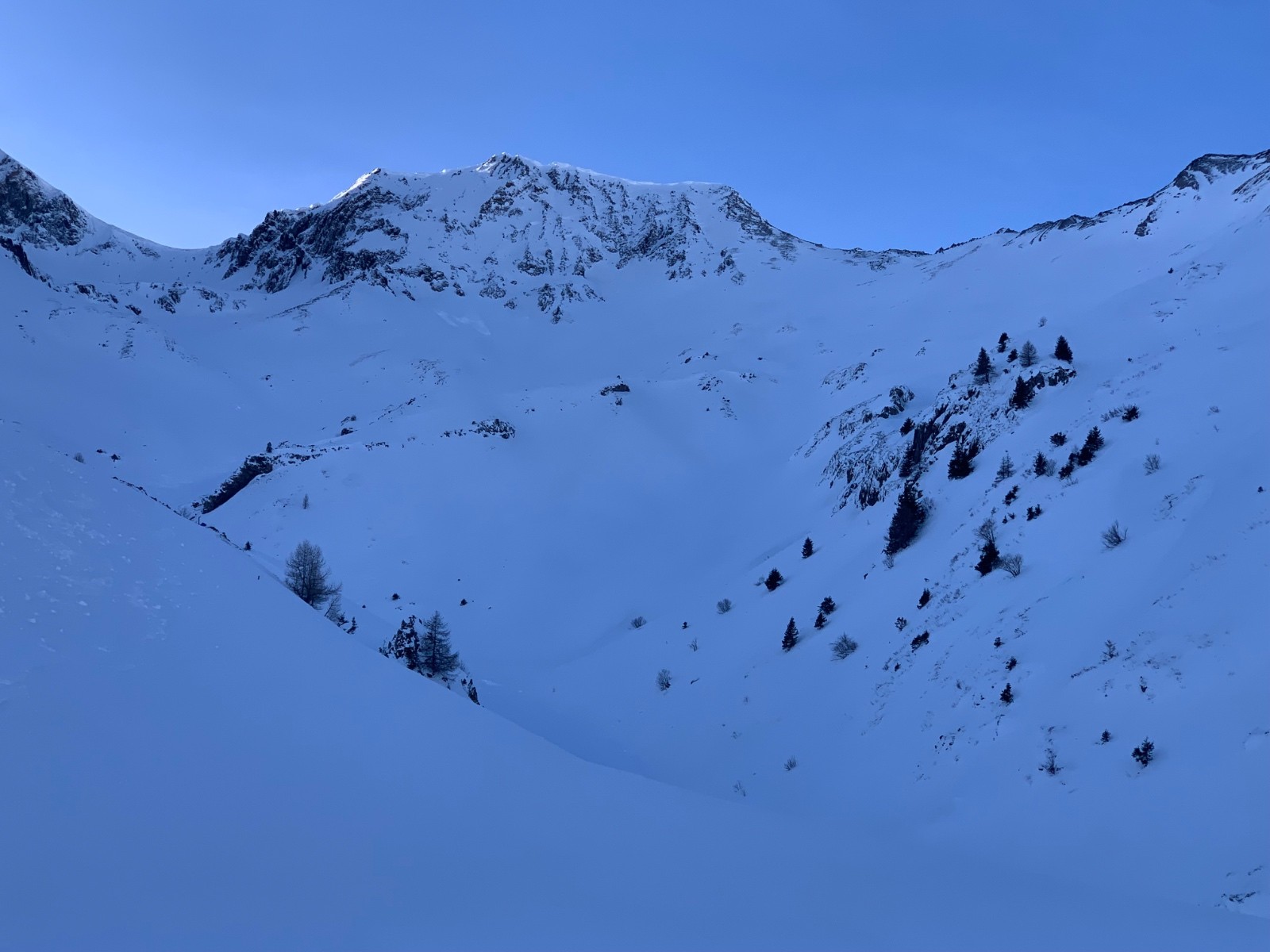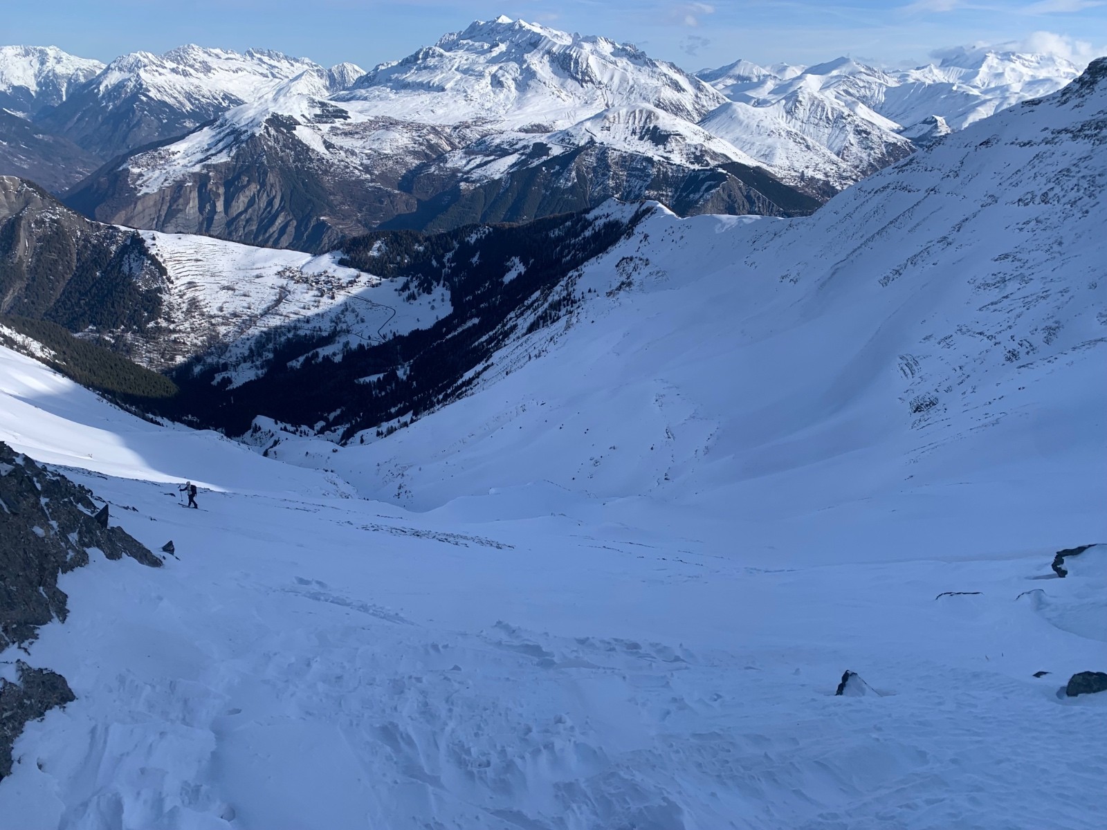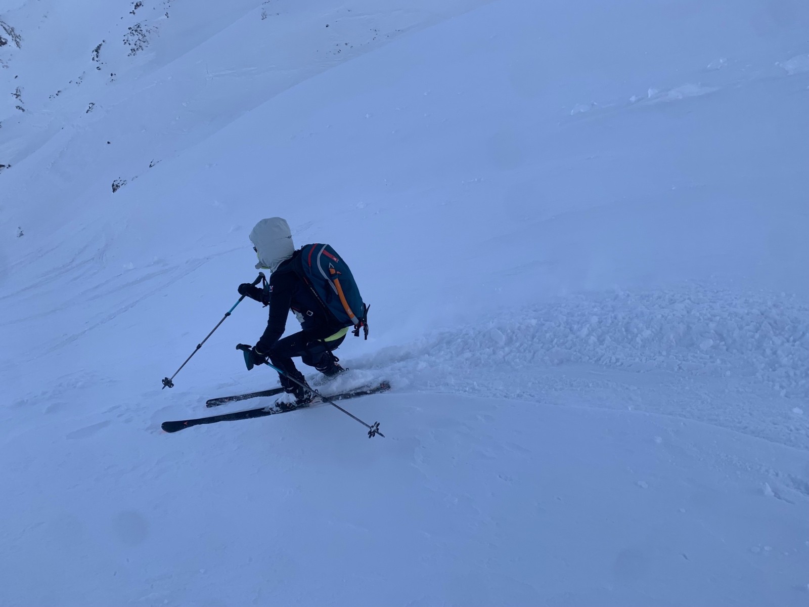 Conditions pour le ski : combe nord en poudre plus ou moins cartonné