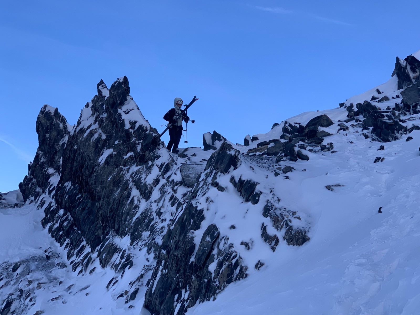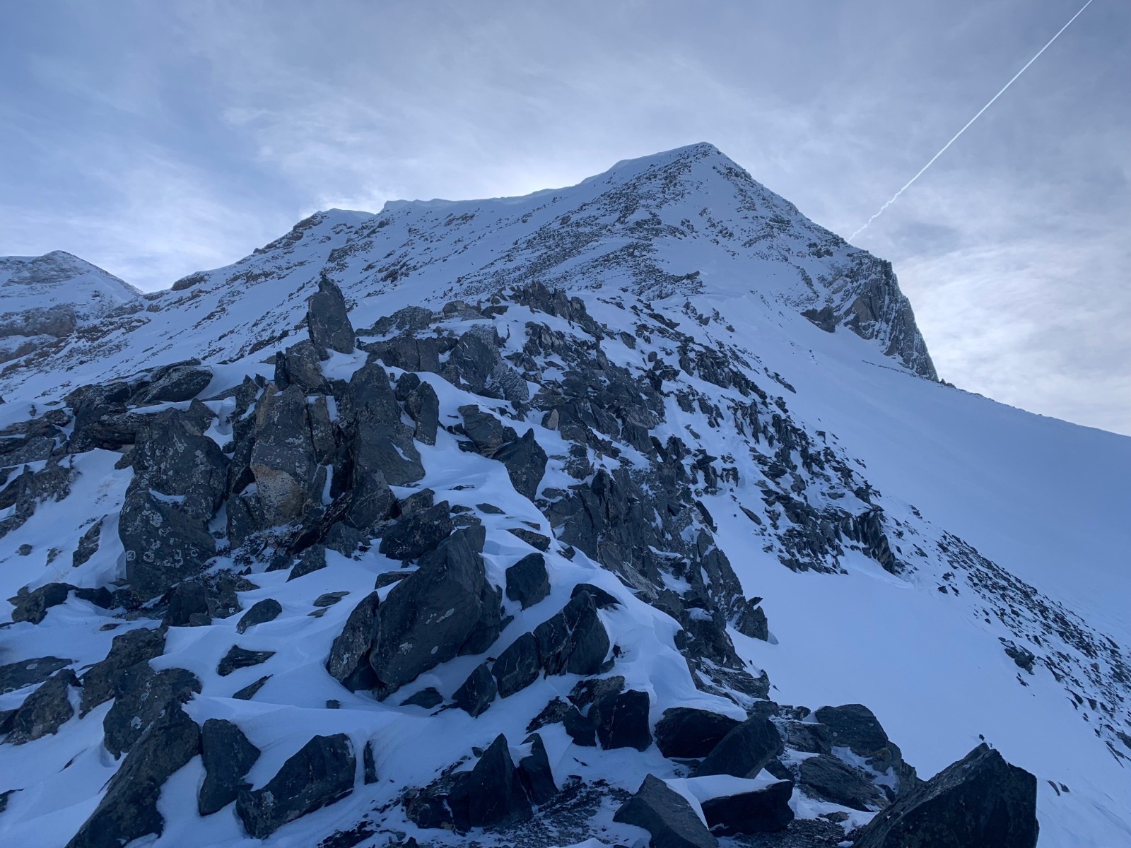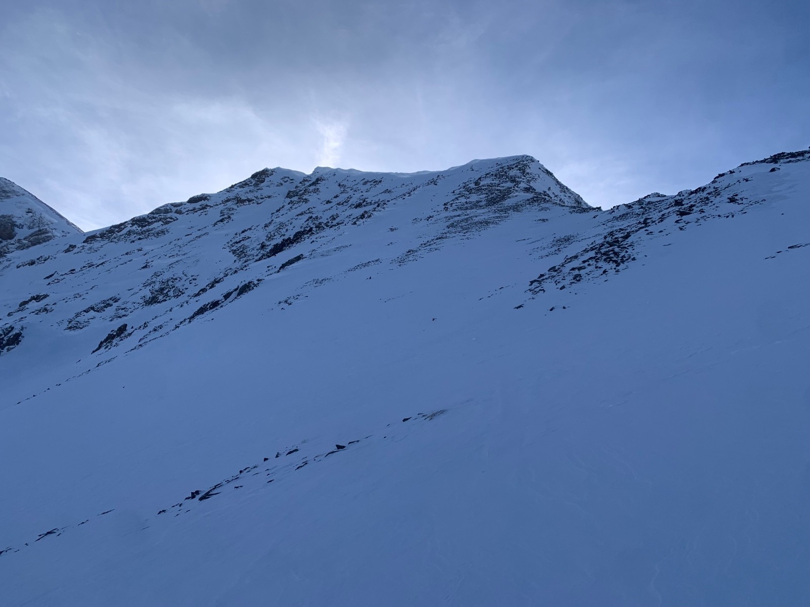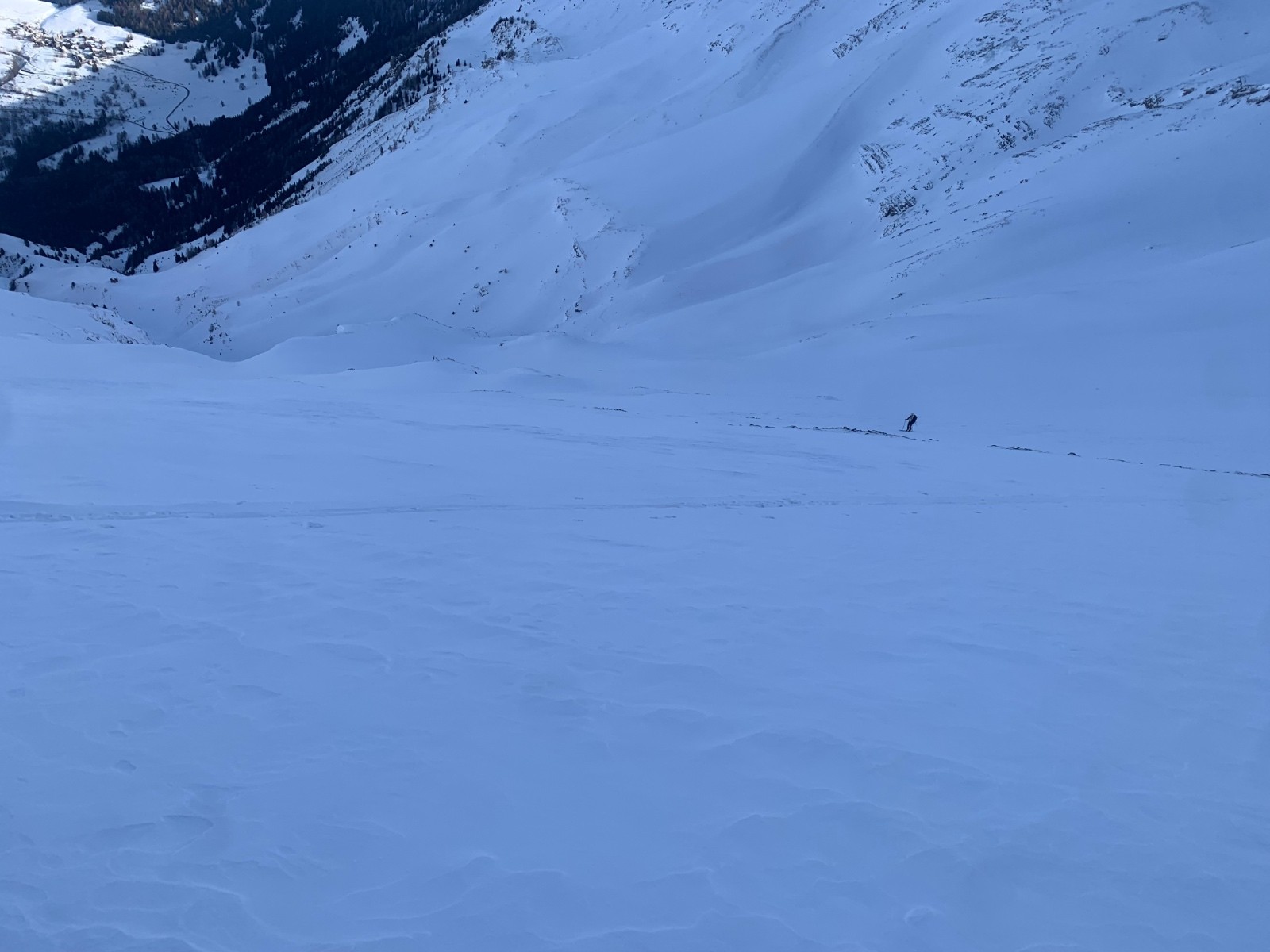 Conditions pour le ski : combe nord en poudre plus ou moins cartonné