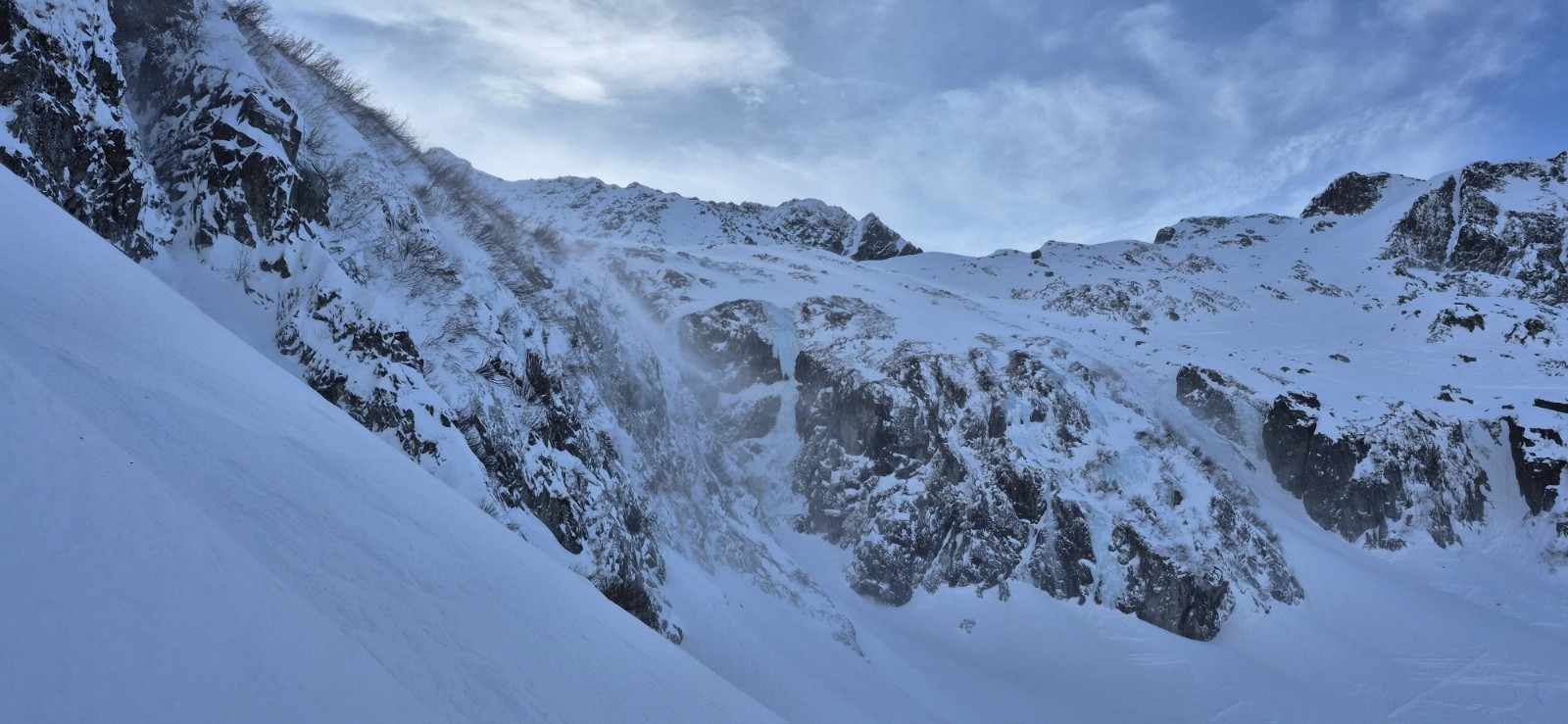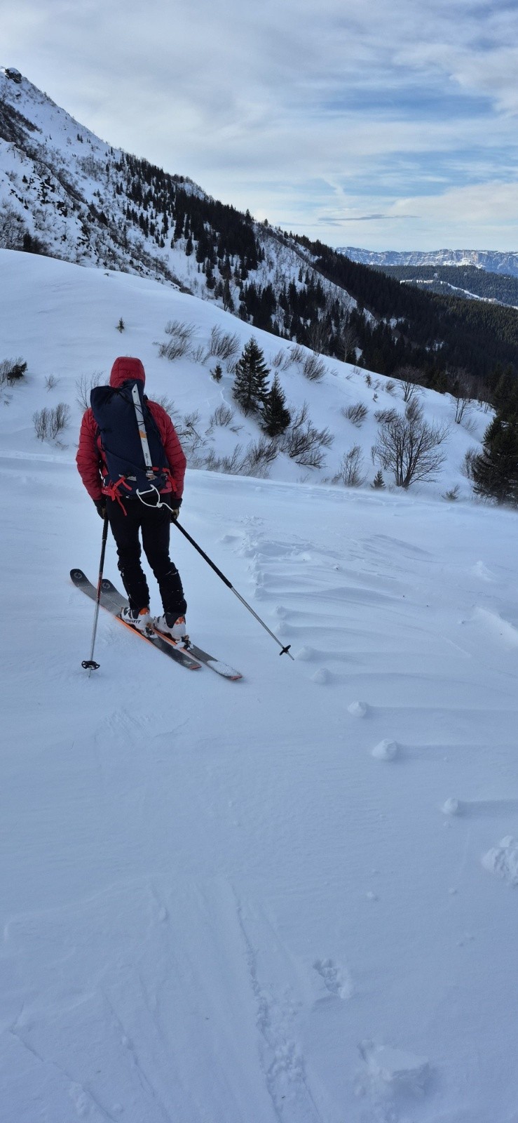 Conditions pour le ski : Glace ce matin sur le sentier plat puis neige humide ou croutee, traces gelées... Couteaux utiles. Neige sèche au dessus de 1600m, soufflée cartonnée ou dure cretes de coq..., qq anciennes croûtes de glace des accus en cours de formation sous ce fort vent d Est descendant... Ski mauvais sous 1600m, correct au dessus .