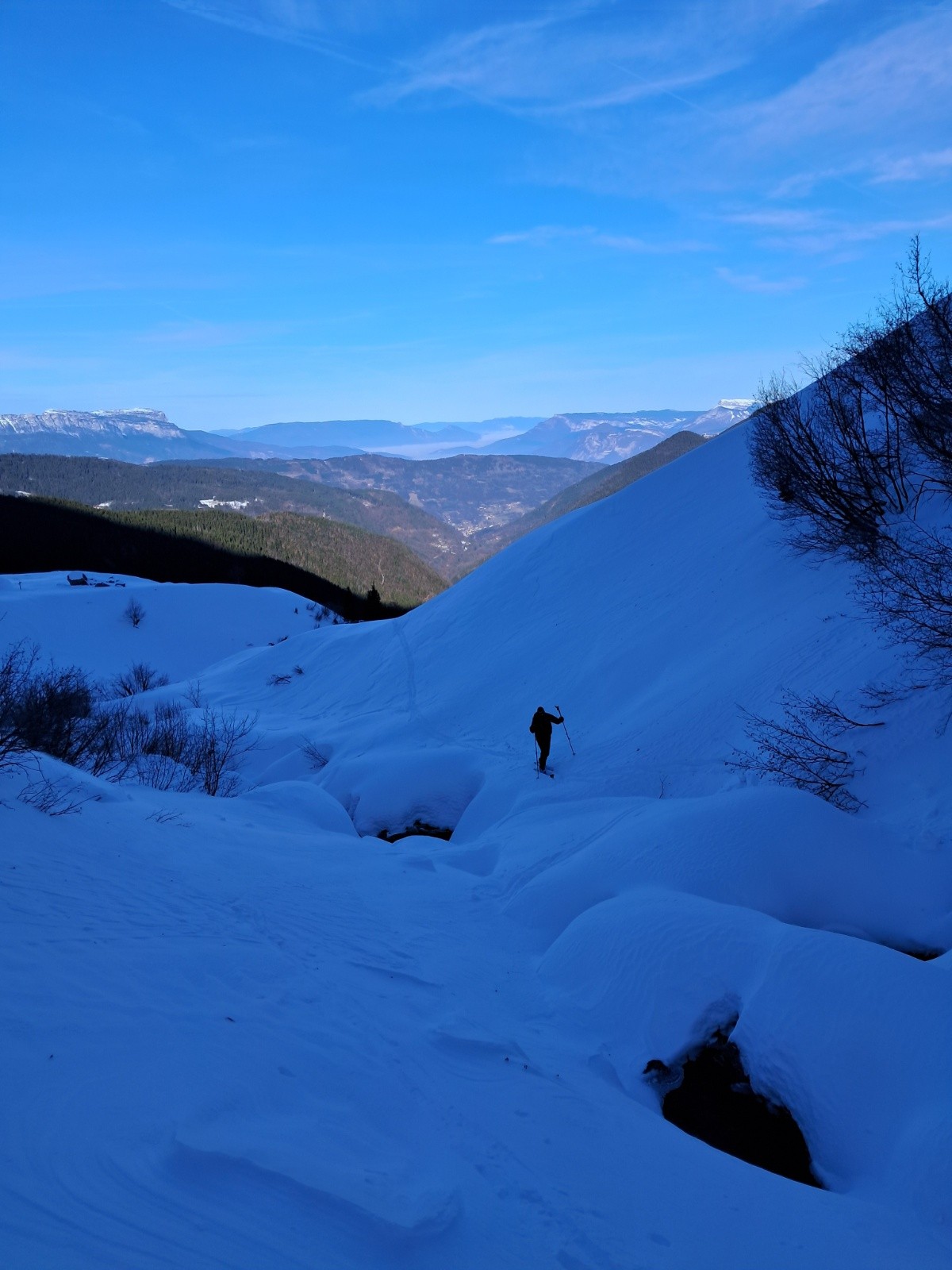 Altitude de chaussage/déchaussage : 1080m mais manque de neige sous 1300m et des cailloux sous les sapins...