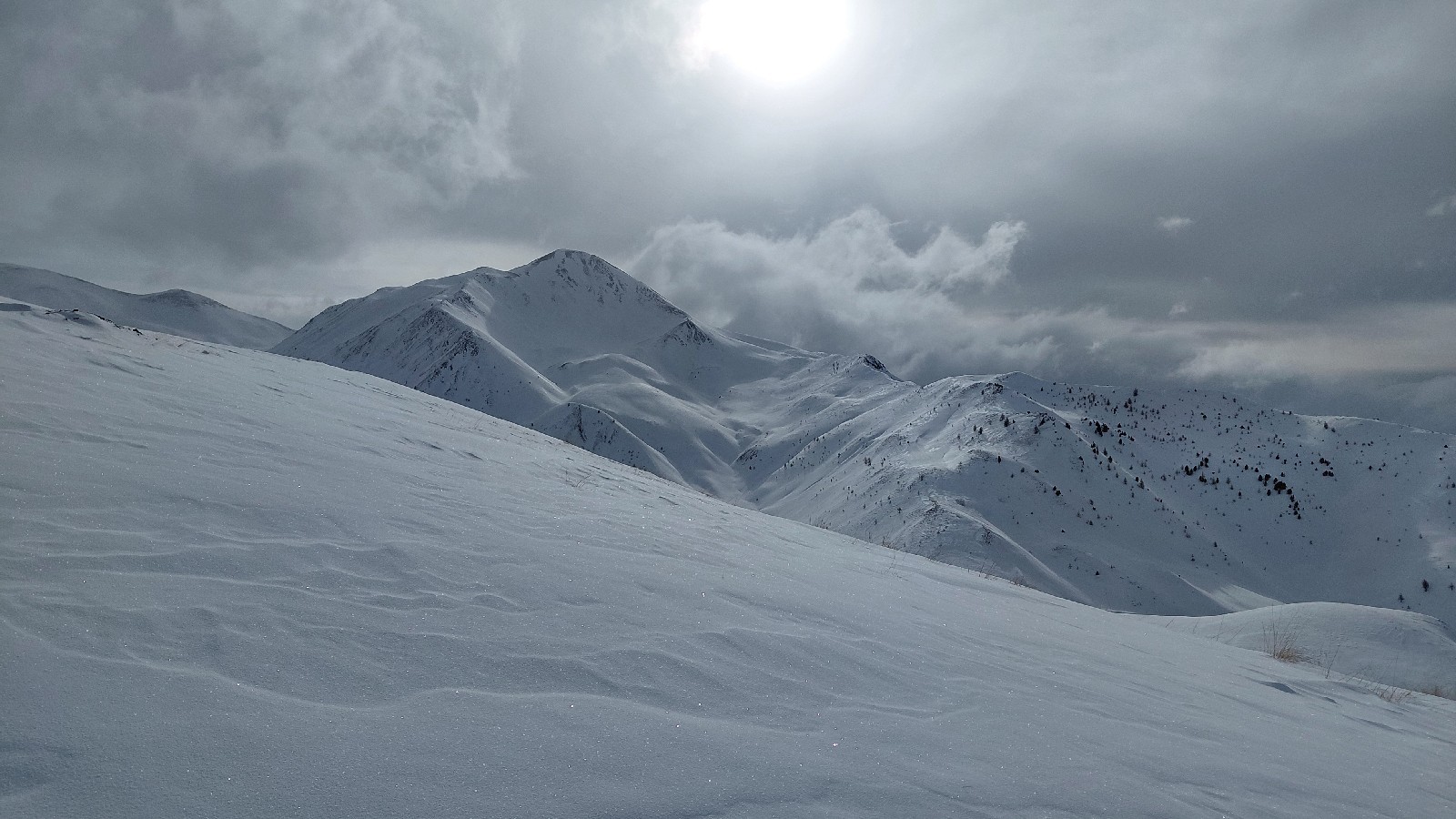 Conditions nivo et activité avalancheuse : ça pue un max, neige vraiment pourrie dessous, sous 2100 une dizaine de neige douce et attirante par dessus, au dessus le vent a travaillé, neige roulée par le vent, gros transports, plusieurs woomps, faut pas aller chercher les pentes.