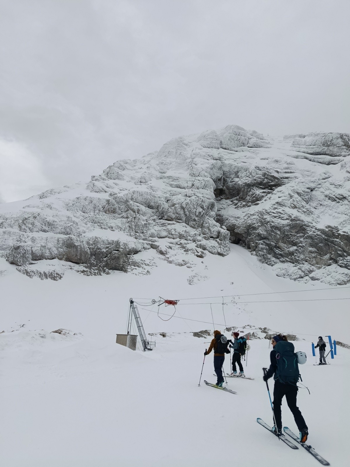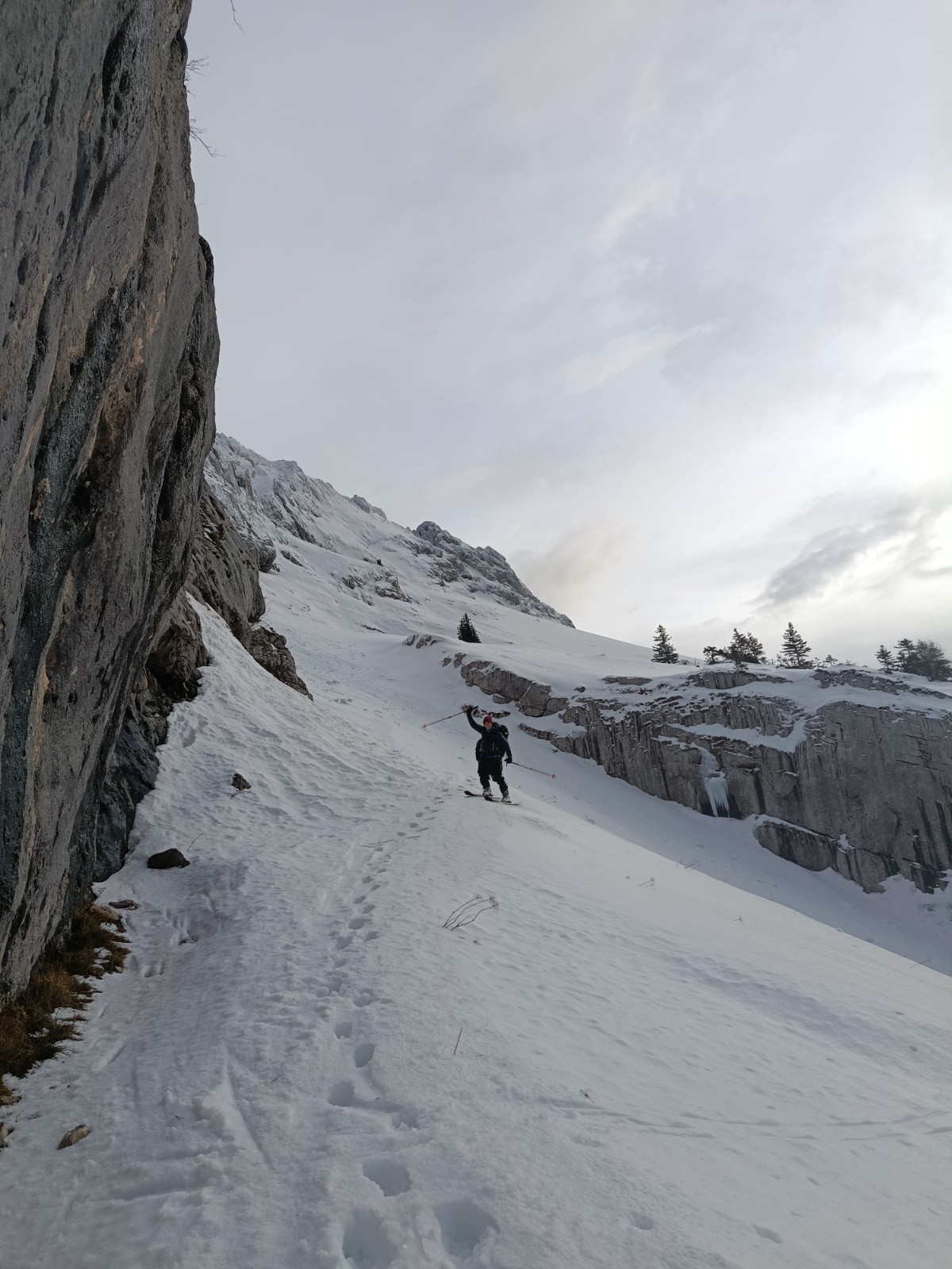 Conditions pour le ski : peu de neige, croûtée, gelée.