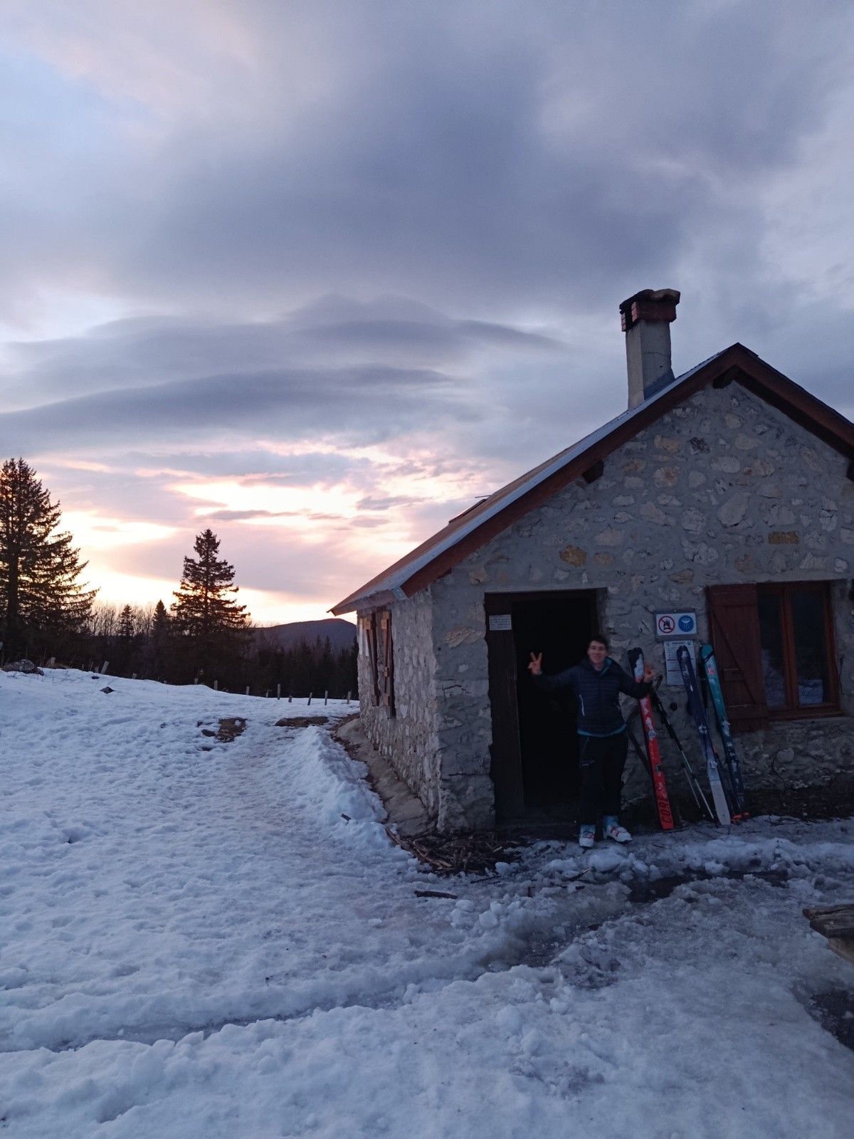 Itinéraire suivi : J1 : départ du Clot des Balmes, sentier de randonnée puis piste fermée pour éviter les pistes de Corrençon (interdites au ski de randonnée). On s'est un peu perdues pour éviter les pistes et sortir de la station mais on a fini par remonter la combe de l'ourson jusqu'au sommet du TK. De là on a basculé vers le lac puis on est remontées au Sciallet des deux soeurs. Direction Petite Sœur Sophie puis on descend le vallon direction nord, à droite des rochers des Jaux. On rattrape le GR, on longe les arrêtes de Gerbier (là ça monte, ça descend, on fait pas mal de manips, c'est long). On a suivi le sentier Peronnard à flan jusqu'à arriver au dessus de la cabane de Roybon qu'on a pu atteindre à ski. Première journée terminée. La cabane est en bon etat, pas de matelas mais une cheminée, du bois et une scie.