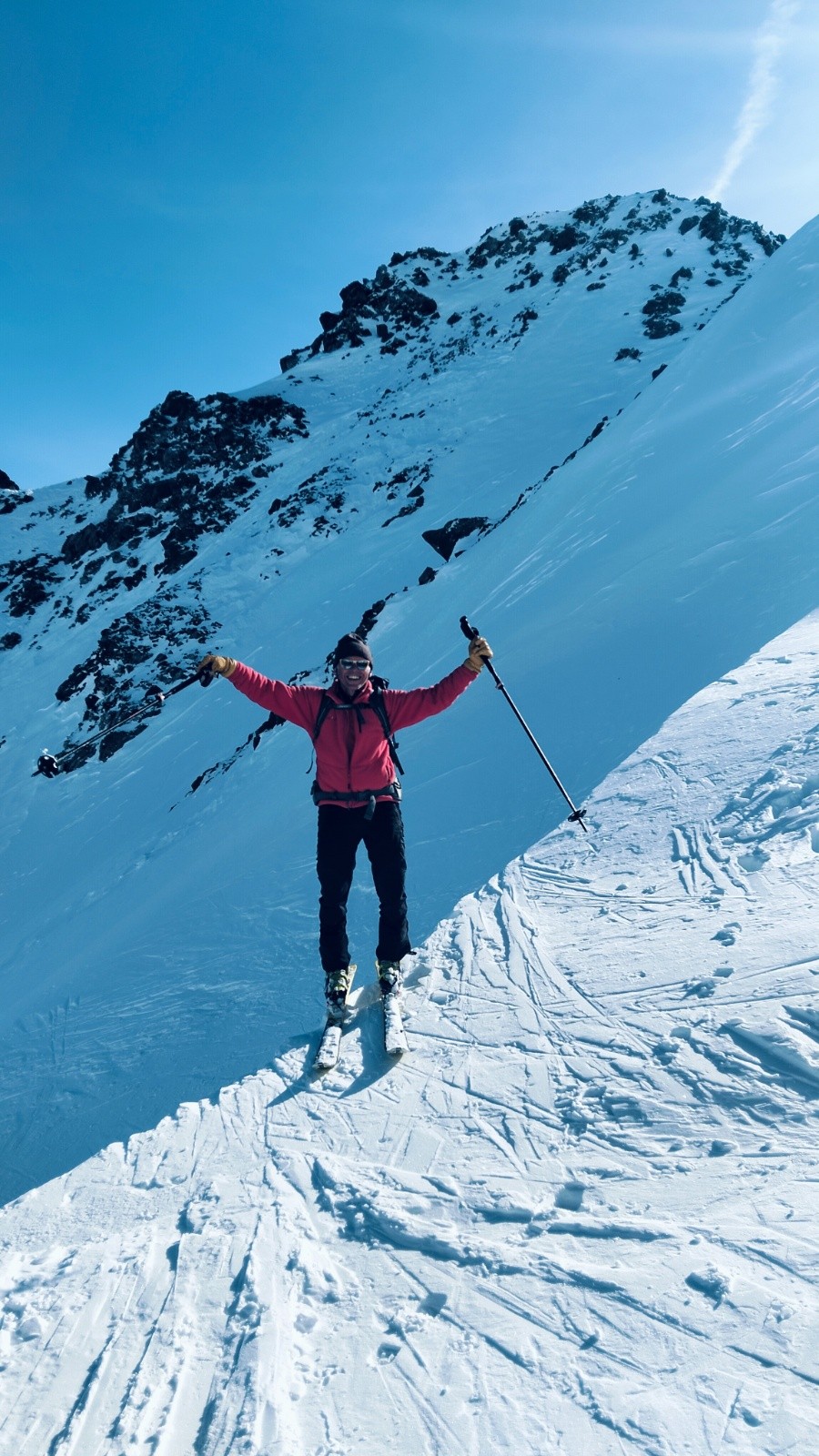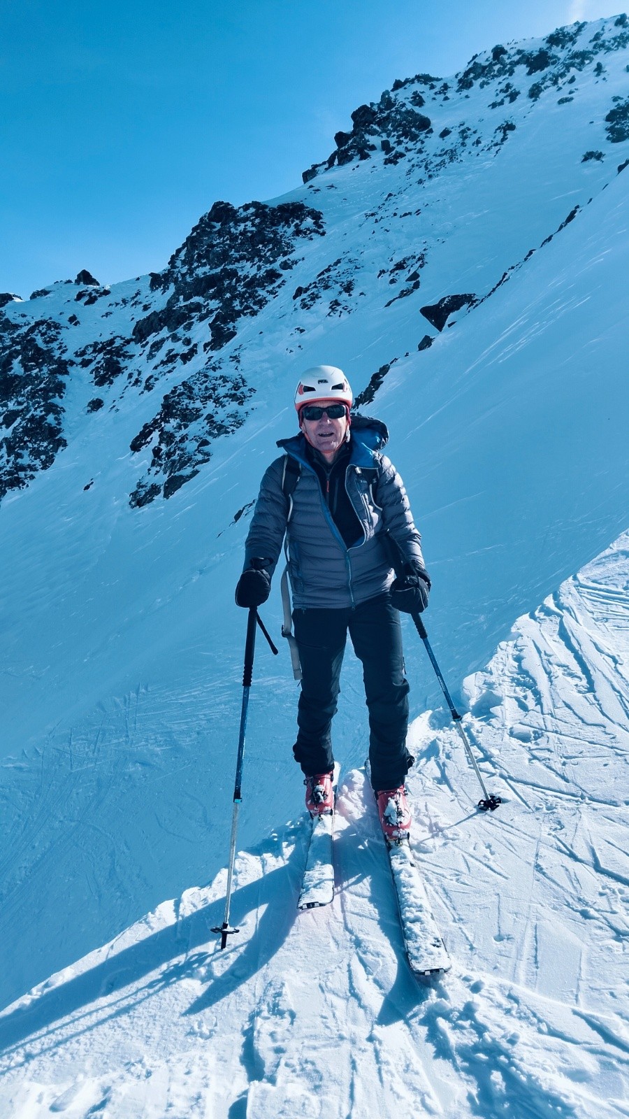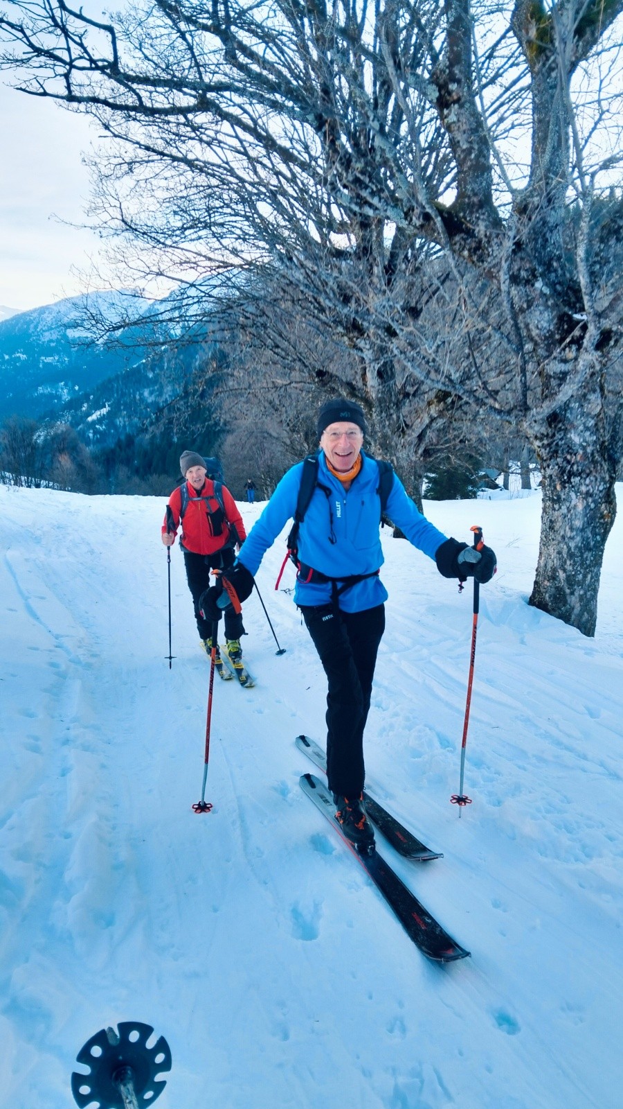 Du coup retour en boucle par la face sud de boucherin. Neige froide dans le fond du vallon, jusqu'à rejoindre nos traces de montée.