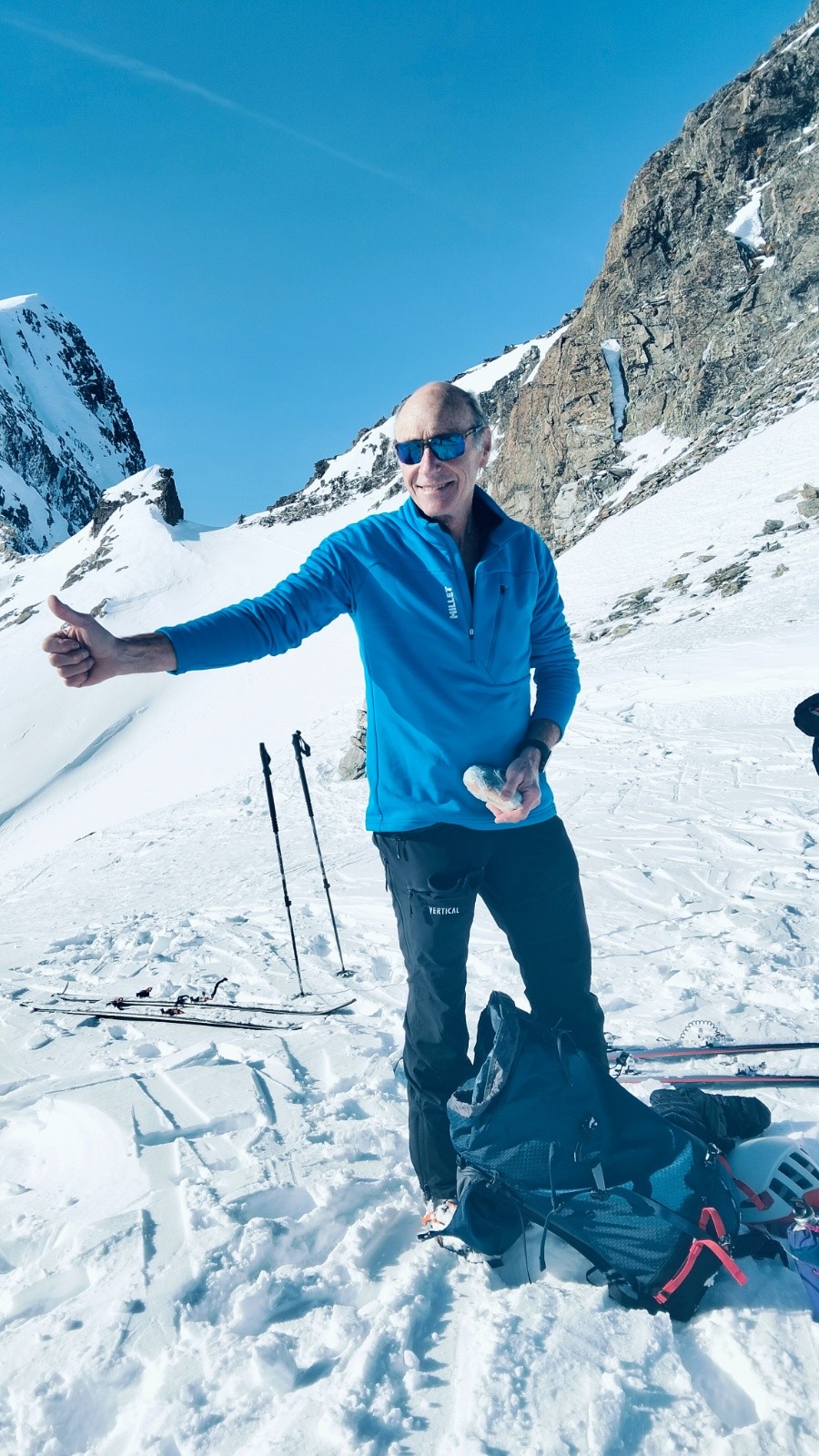 Projet de revenir par le passage Brabant, mais neige béton dans la traversée ouest qui commençait seulement à prendre le soleil. Un de nous 4 n'avait pas pris les crampons qui auraient sans doute été les bienvenus en partant d'abord en descente sur 100 m environ et une remontée en ouest mois expo que la traversée directe puis le col bien lustrée en neige béton.