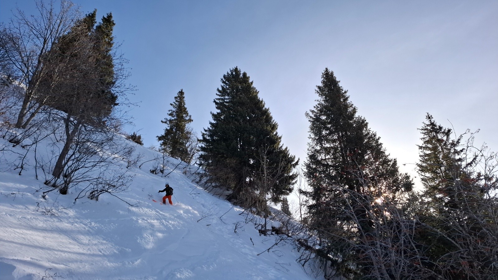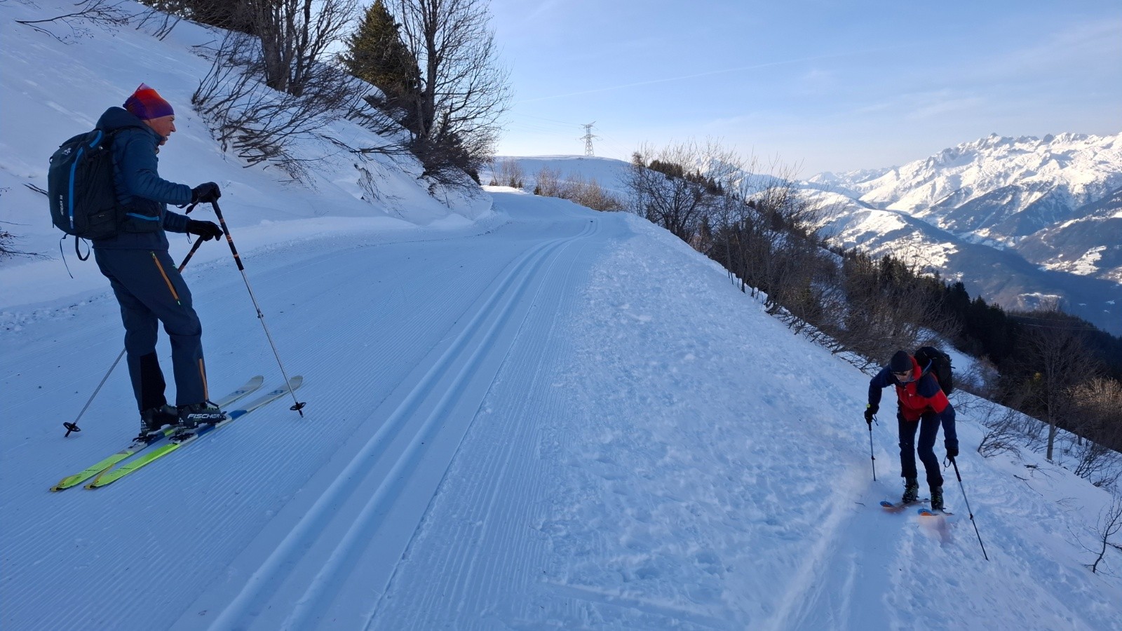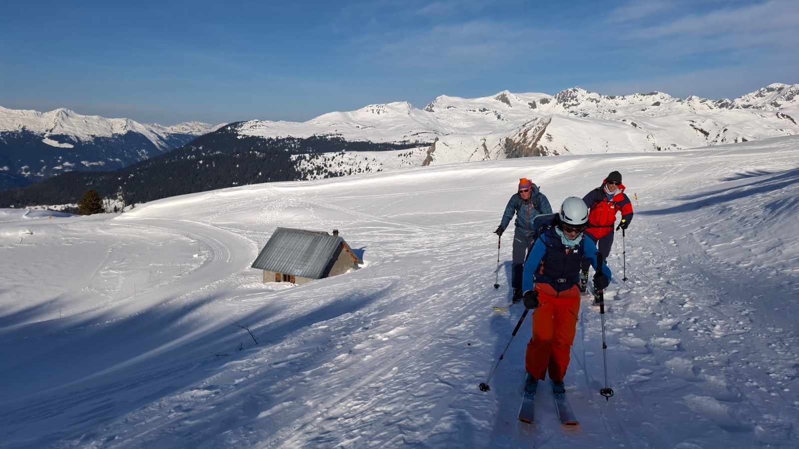 Conditions nivo et activitĂ© avalancheuse : encore poudreux Ă lâabri du vent de SE en forĂȘt, crĂȘtes pelĂ©es, pas de dĂ©gel en S sauf sous 1800m env. Pas d'activitĂ© ce jour sur notre itinĂ©raire