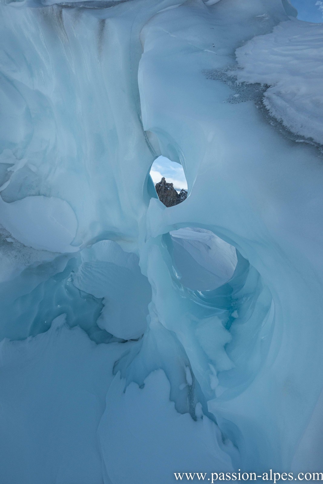 Peu importe, la trace est belle, elle chemine dans des zones qui marquent par la différence d'échelle entre le skieur et l'environnement dans lequel il se fond pour un instant. Demain, ou la semaine prochaine, le terrain aura déjà évolué : tout va très vite dans cette zone où le glacier avance vite et où le vent peut changer la donne en quelques heures en transportant et en erodant la neige. Ce côté éphémère est une chance, car le plaisir de la découverte est infini !