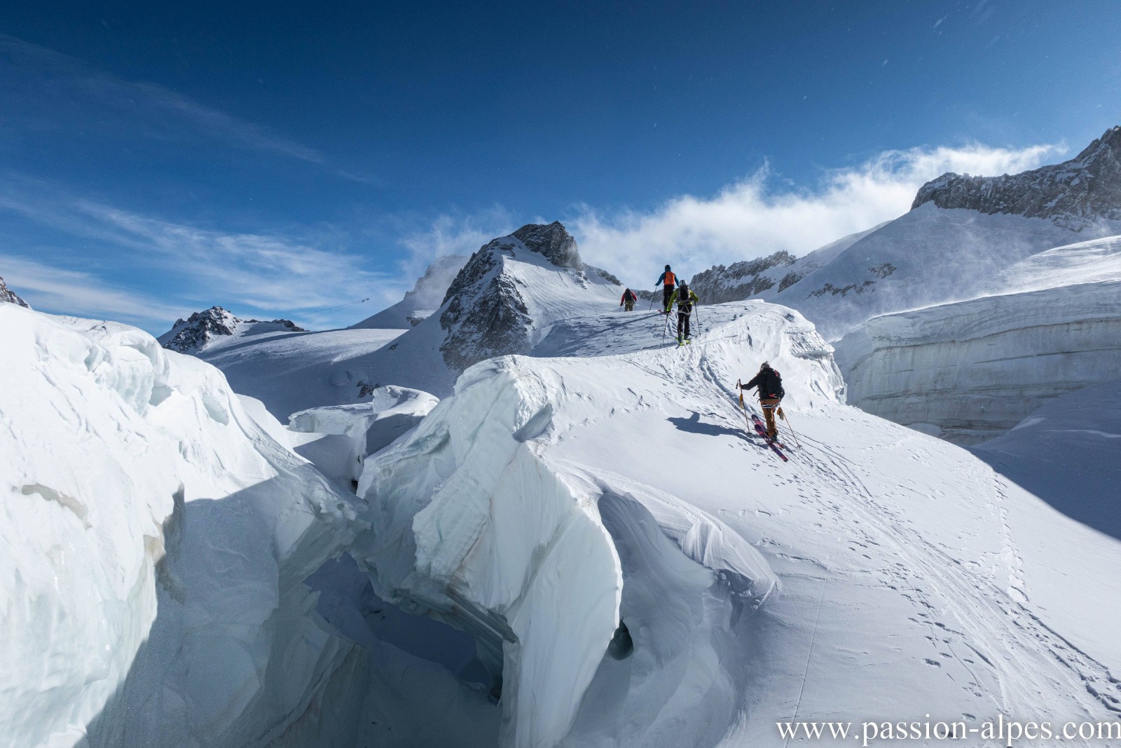 Col d'entreves (vallée Blanche), les dents de la mer, exploration combe maudite