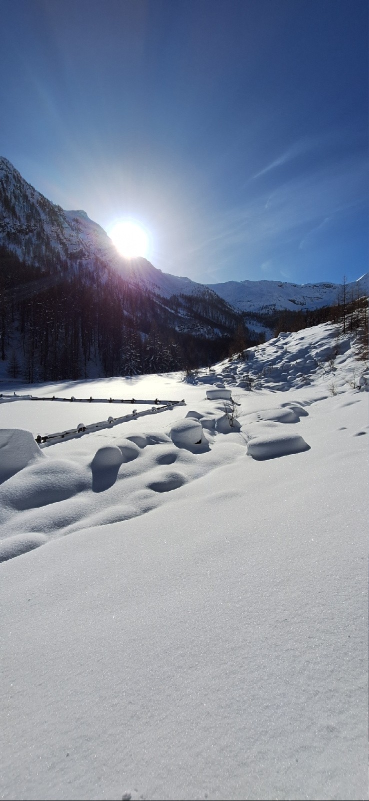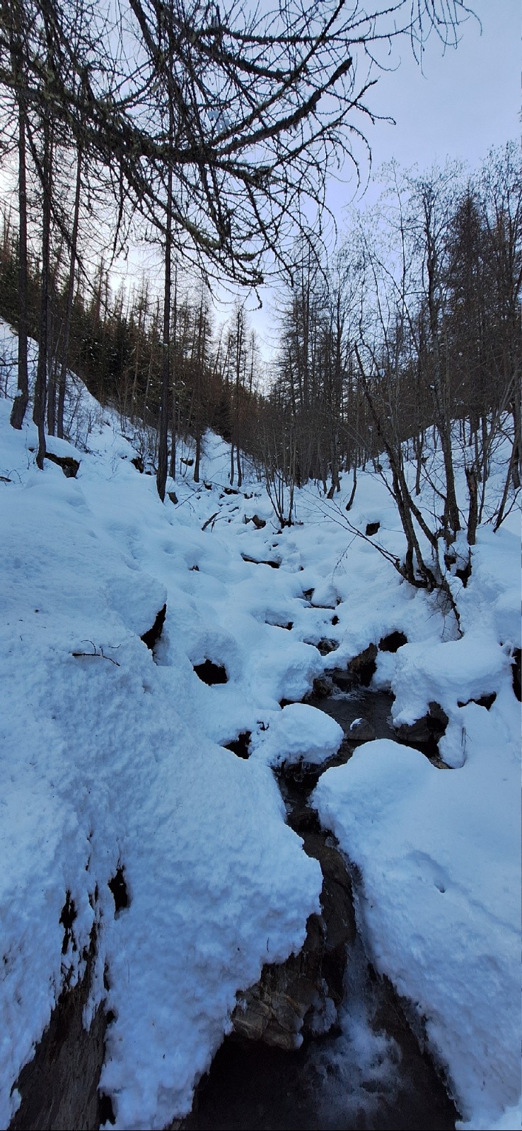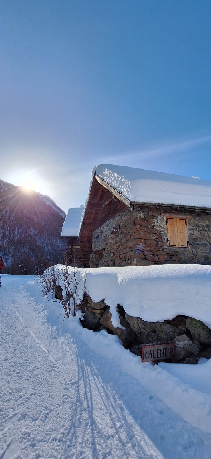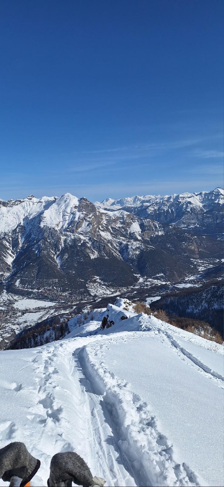 Itinéraire suivi : Classique suivant topo jusqu'au village de Narreyroux / Après tracage dans la forêt dans 30 à 40 cm de poudreuse histoire de se faire plaisir retour sur la trace sur la fin / Stop Alti. 2500 m / Descente dans le vallon le Gand Coul / Neige top du haut jusqu'en bas / Retour par le village et route été/ Virée avec Fred et Vincent
