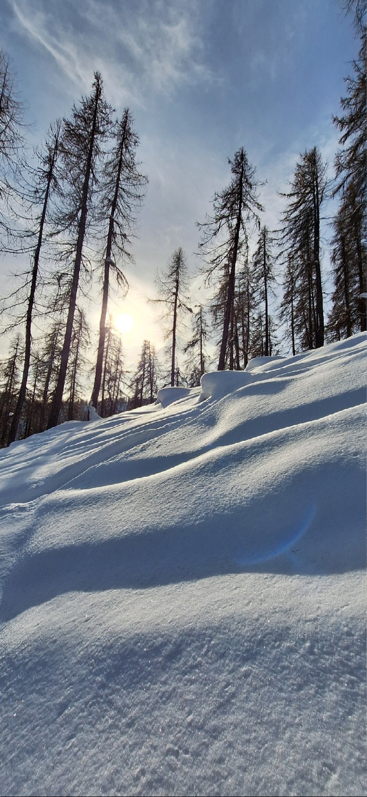 Conditions pour le ski : Bonne pioche neige encore poudreuse et légère, malgré l'ensoleillement, sur la sortie