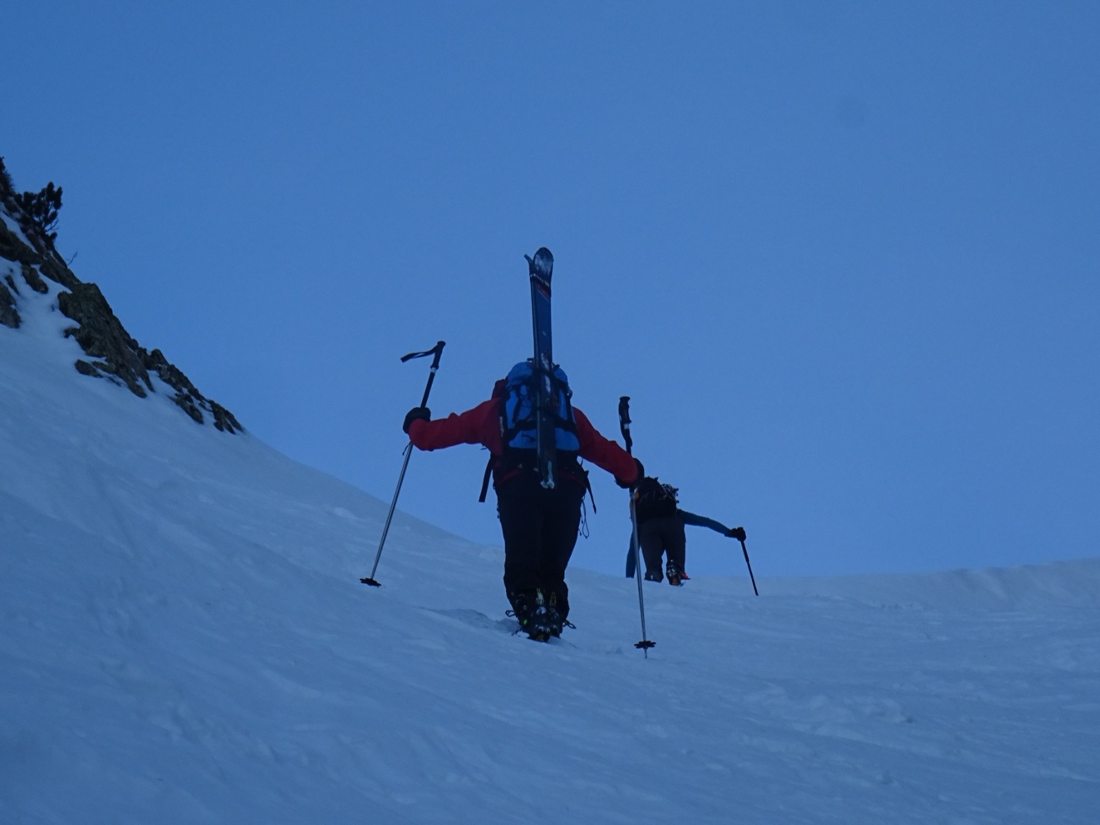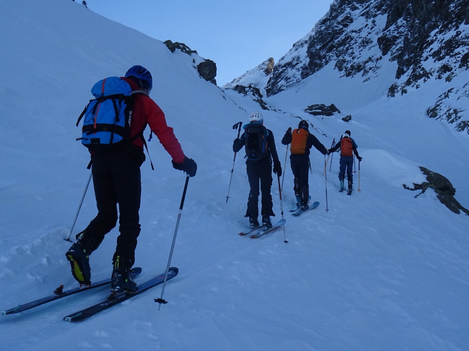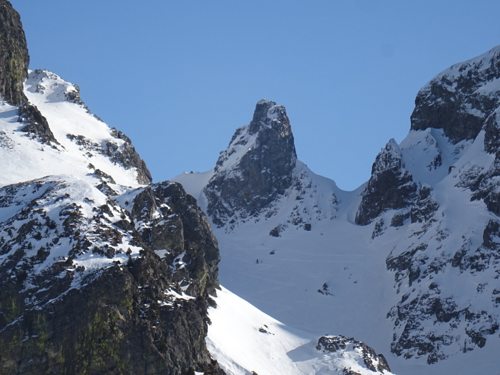 * le couloir de montée à la Pointe de Vaudaine n'est pas la voie normale, c'est une variante - il y a un passage direct tranquille qui rejoint dessous