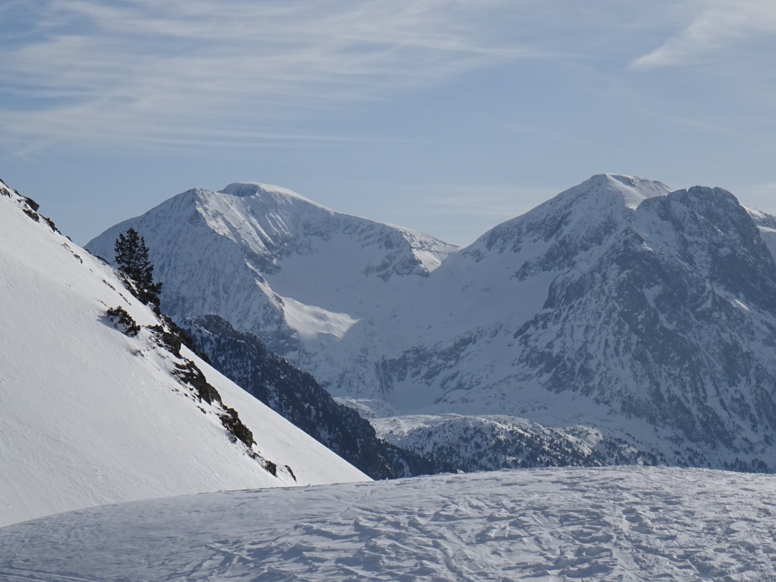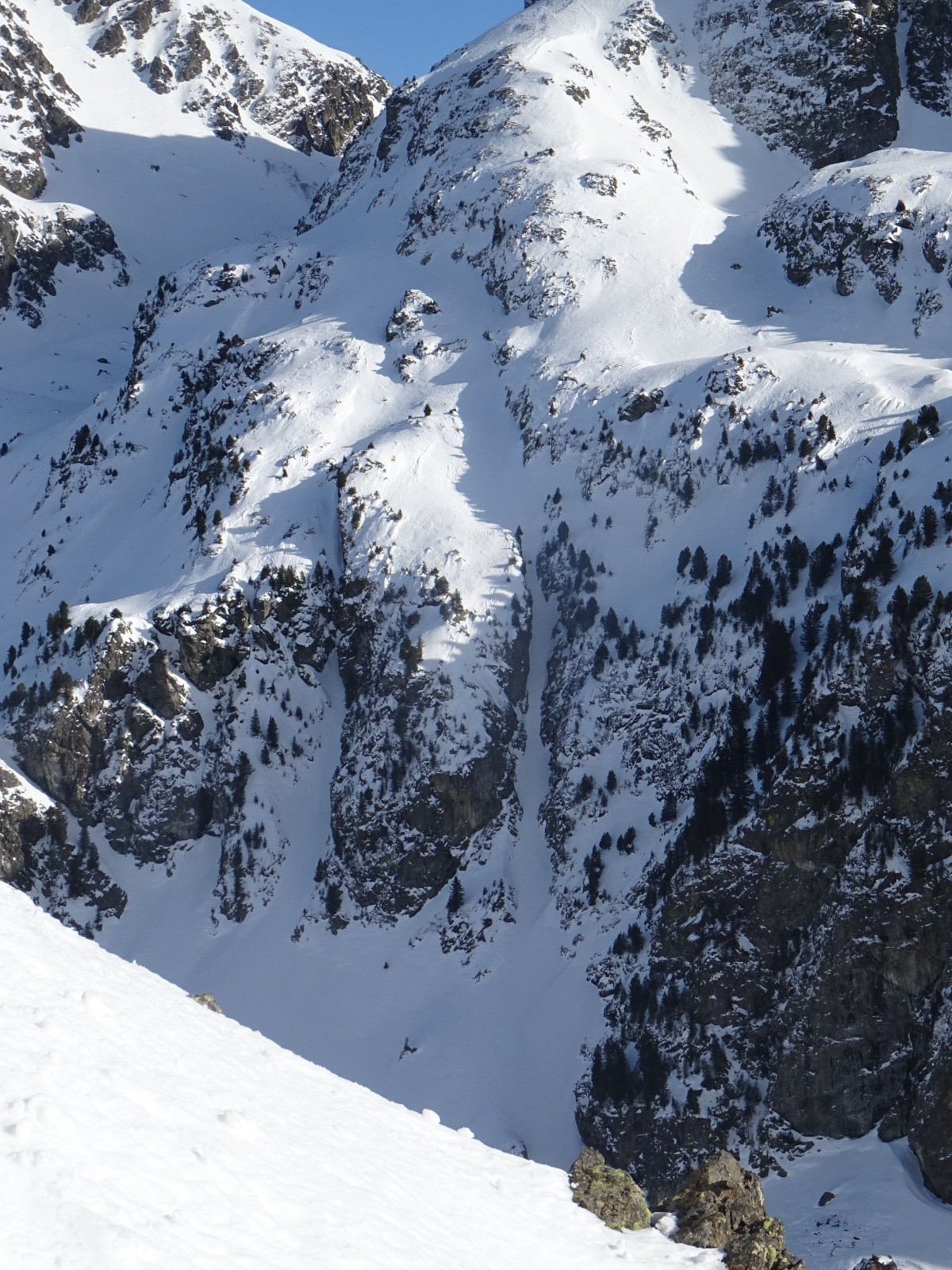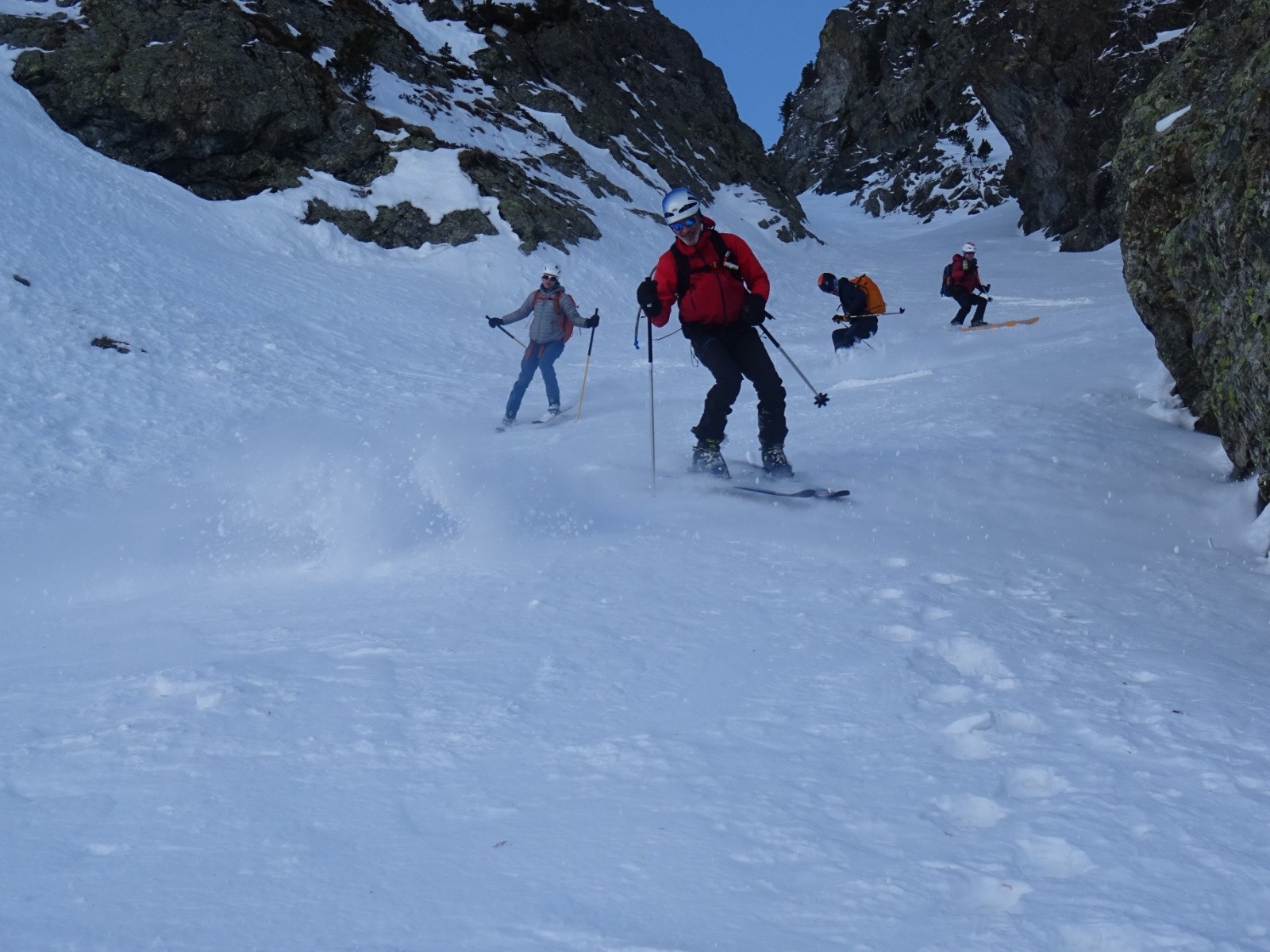Quasi-personne vers la Pointe de Vaudaine (salut électronique au skieur qui remontait avec sérénité et sourire le couloir d'accès quand nous le descendions à 6 !), peu de monde vers l'Eulier, un peu plus sur les pistes, forcément.