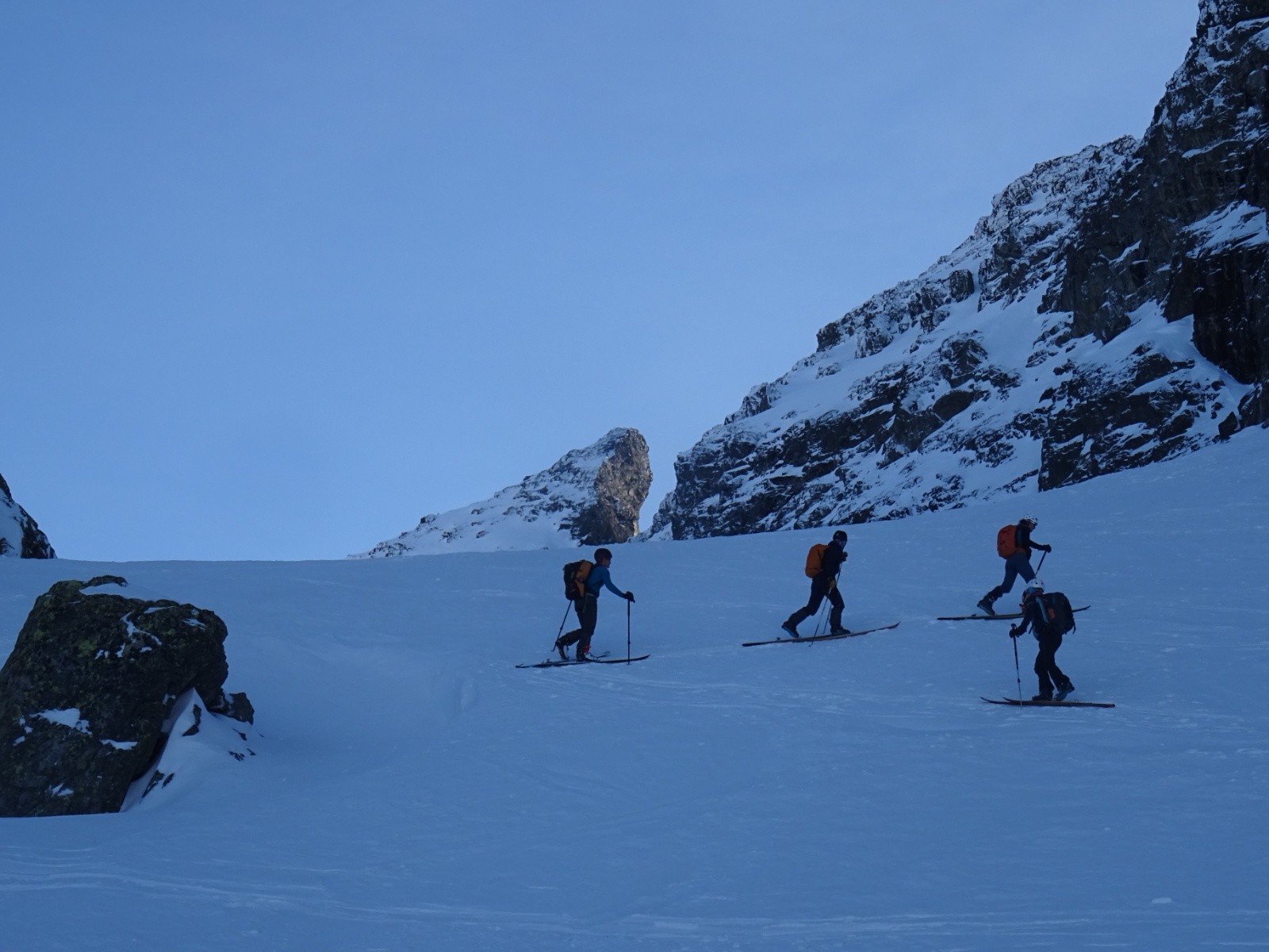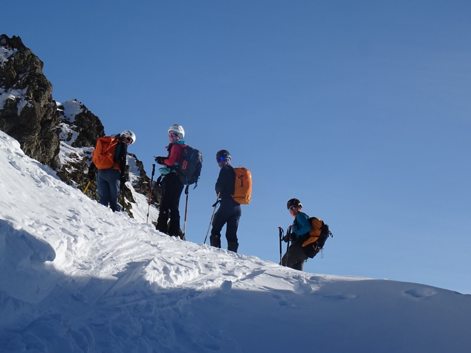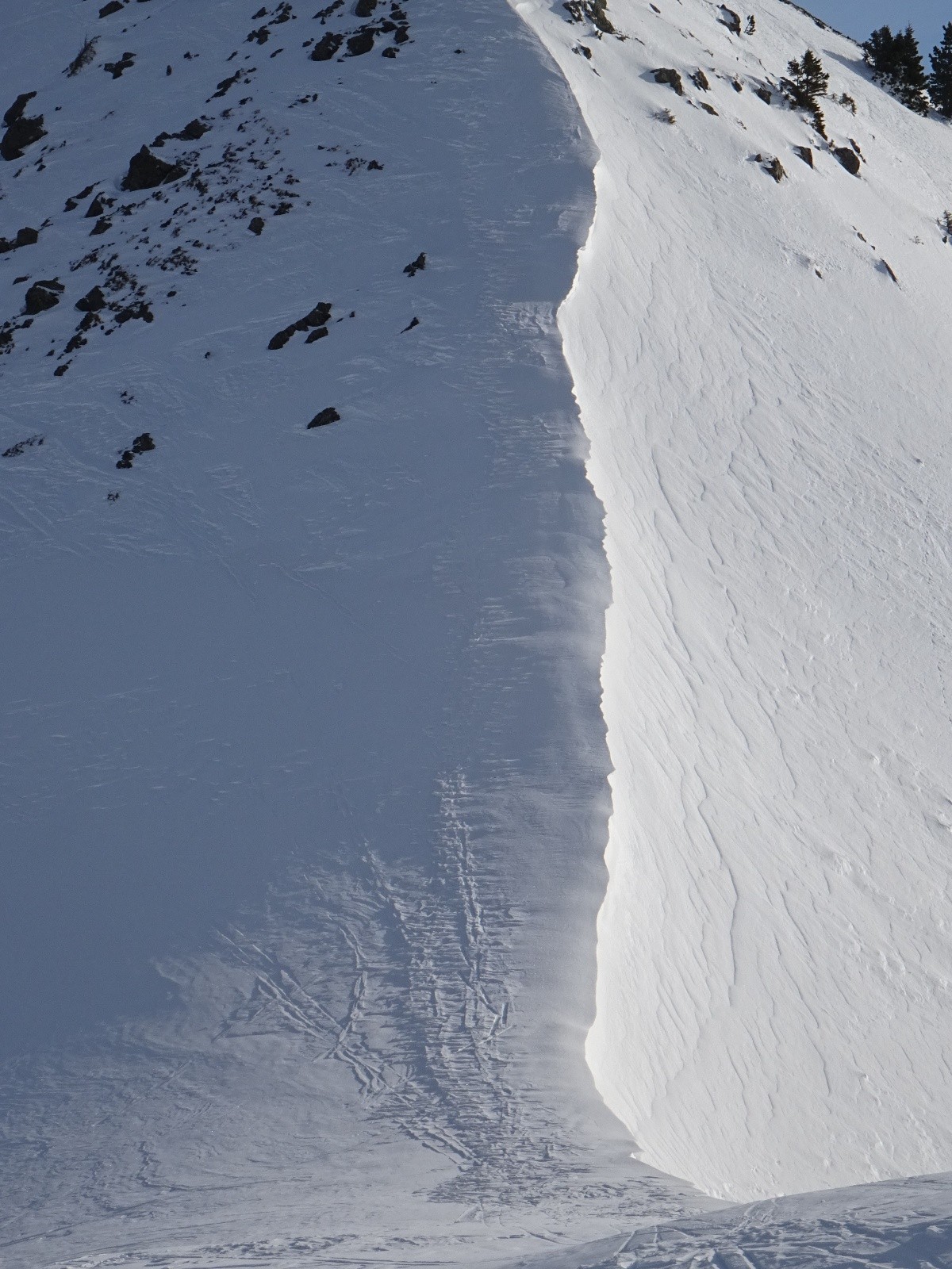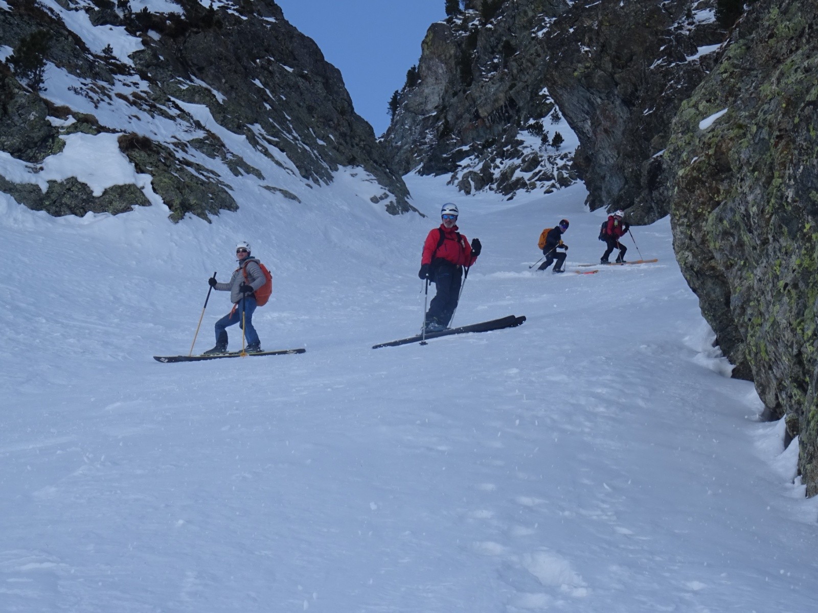 Quasi-personne vers la Pointe de Vaudaine (salut électronique au skieur qui remontait avec sérénité et sourire le couloir d'accès quand nous le descendions à 6 !), peu de monde vers l'Eulier, un peu plus sur les pistes, forcément.