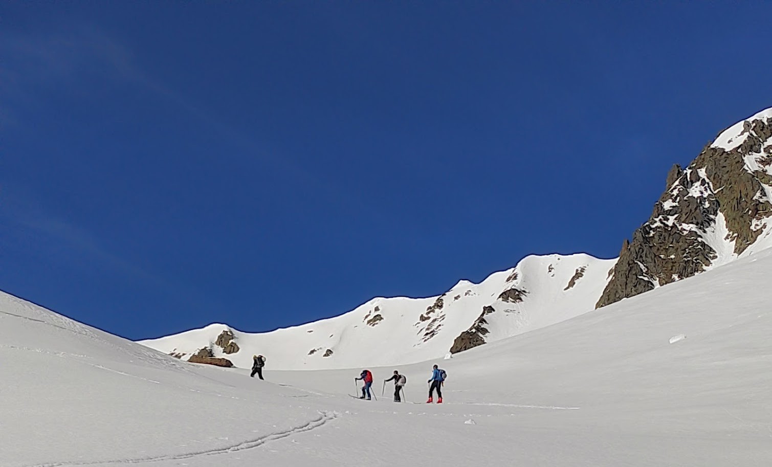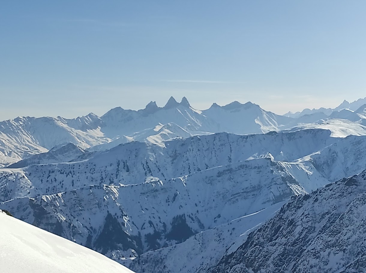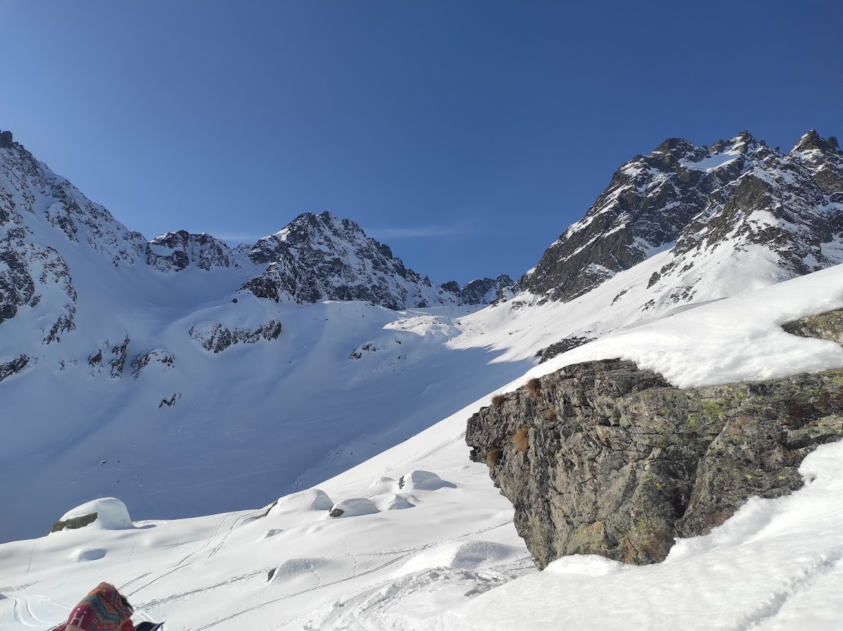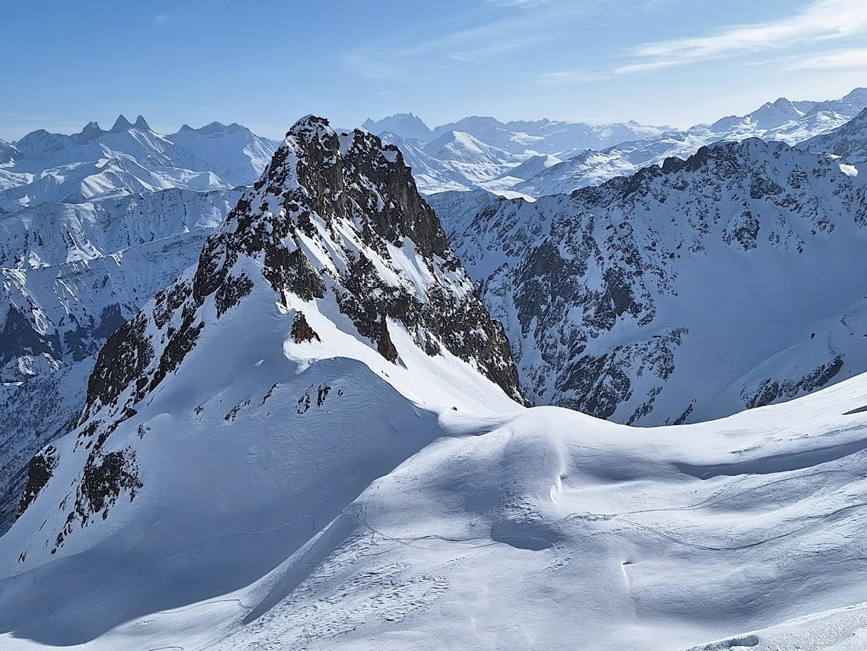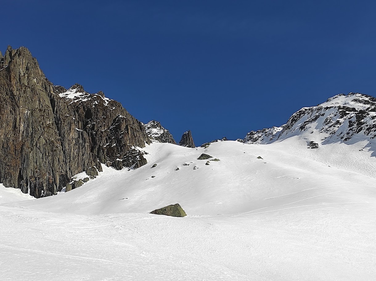 Conditions nivo et activité avalancheuse : stable cf BRA, descente à 14h dans la combe du col des Fontaines en moquette, il ne fallait pas attendre plus, un passage plus croutée et ensuite bonne neige poudreuse entre les arcosses