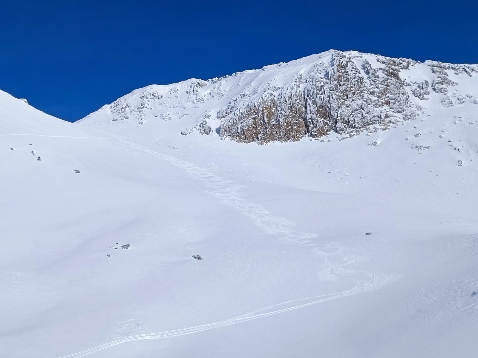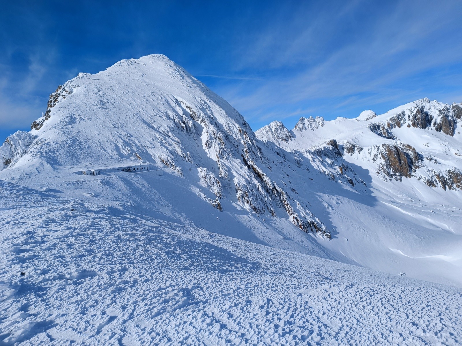 Conditions nivo et activité avalancheuse : sur presque toute la course la neige a été travaillée par un vent tres fort, mais reste cependant agreable a skier (couche epaisse de poudreuse dense)