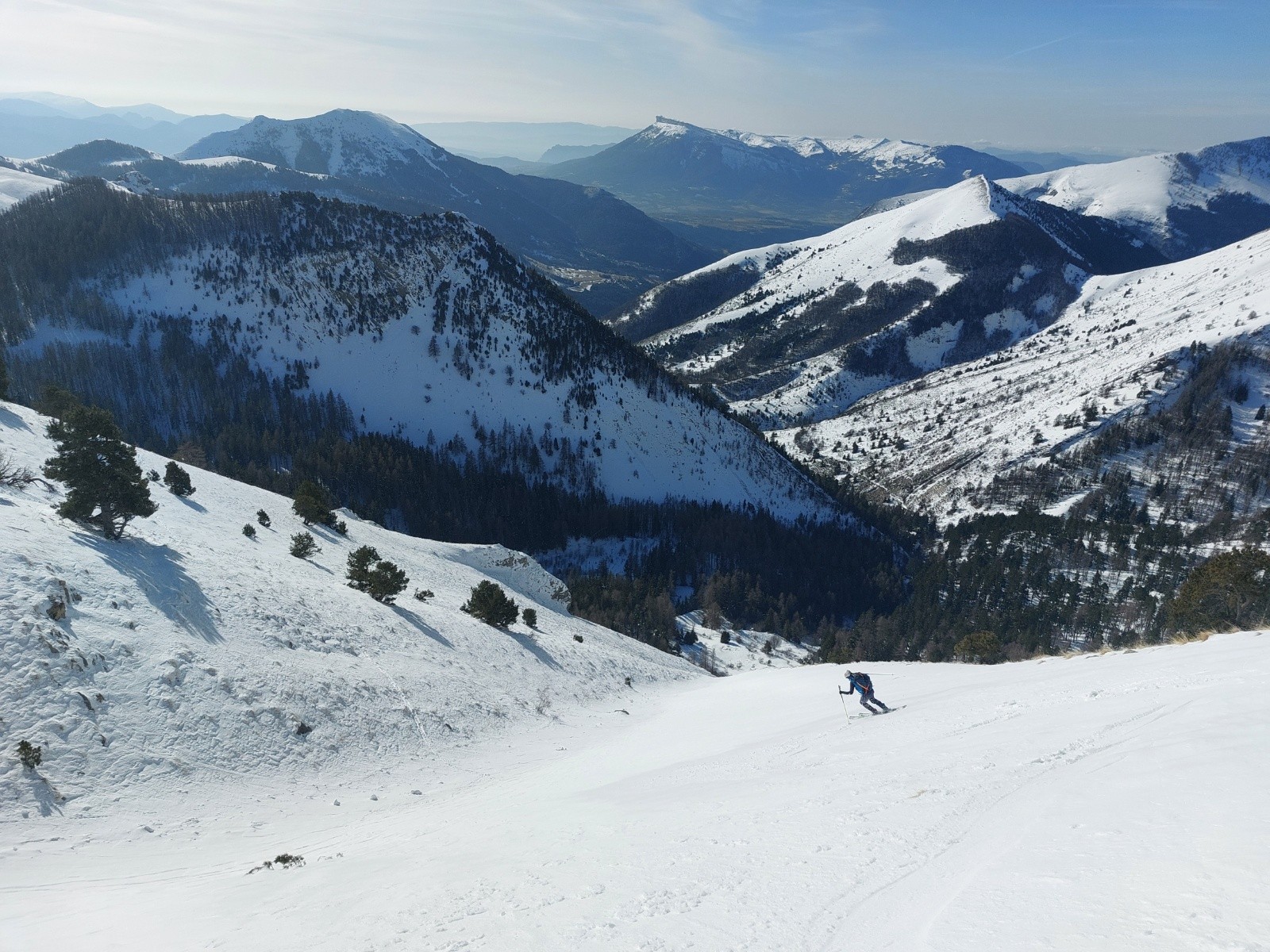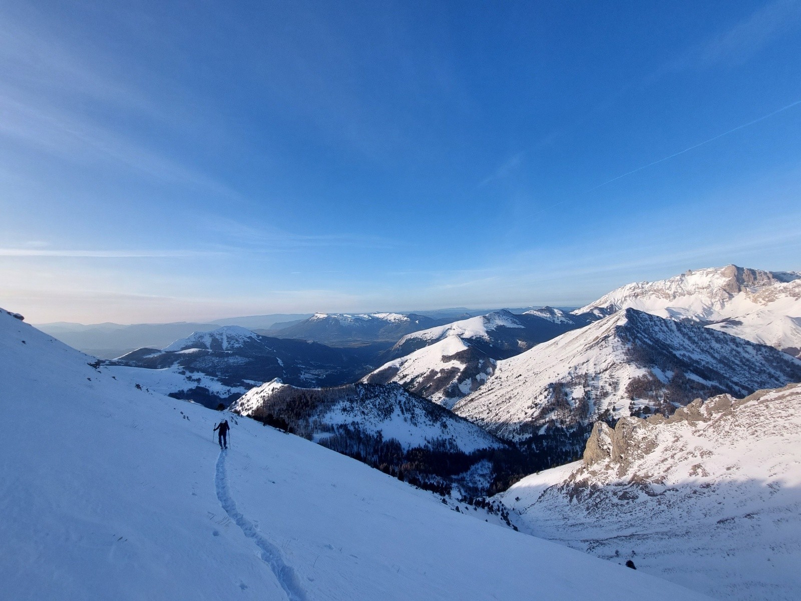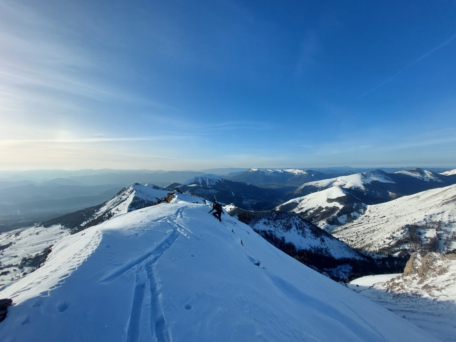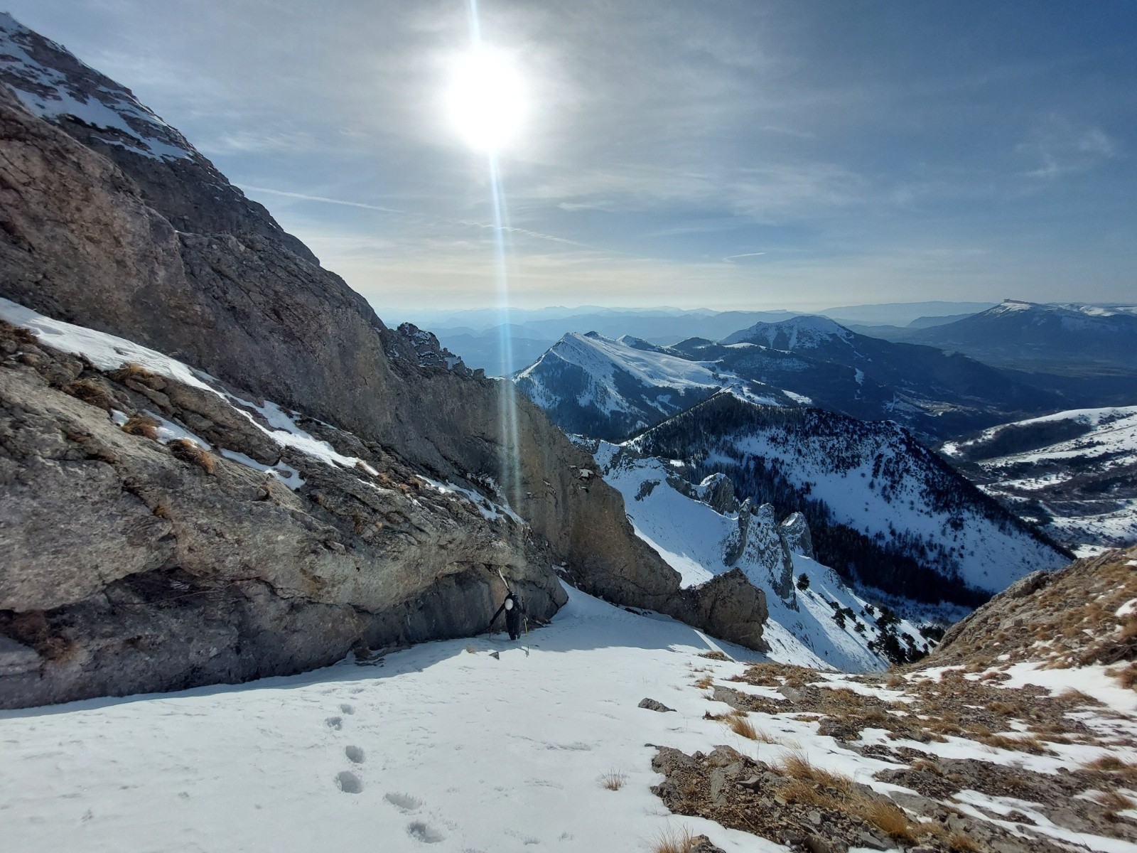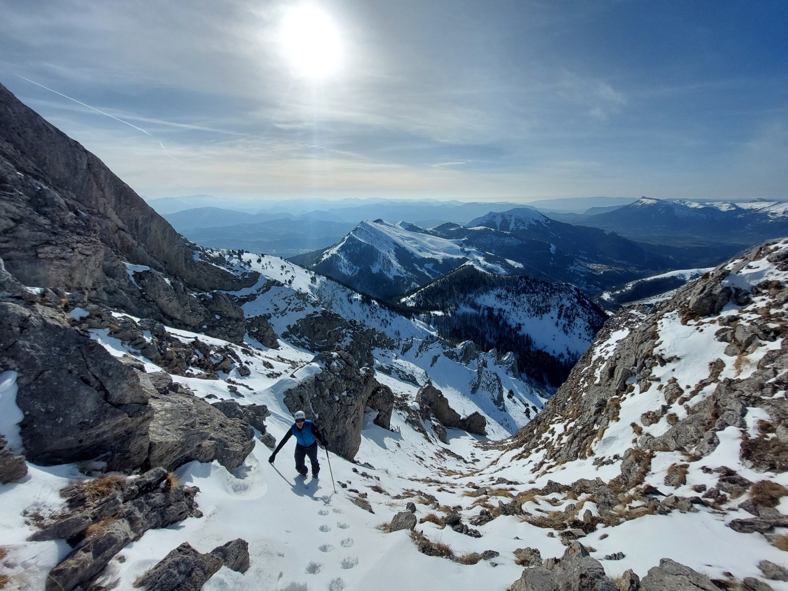Itinéraire suivi :les Vachiers, pic de Gleize par l'arète S et face O, descente combe SO jusque vers 1800m, montée à la montagne de Chaudun par la face SO et son couloir. Route forestiere de Chaudun. Remontée jusque vers 1850m puis retour aux Vachiers.