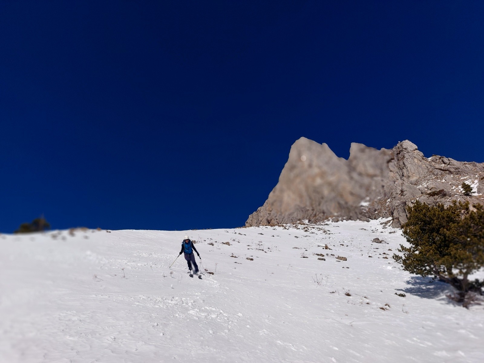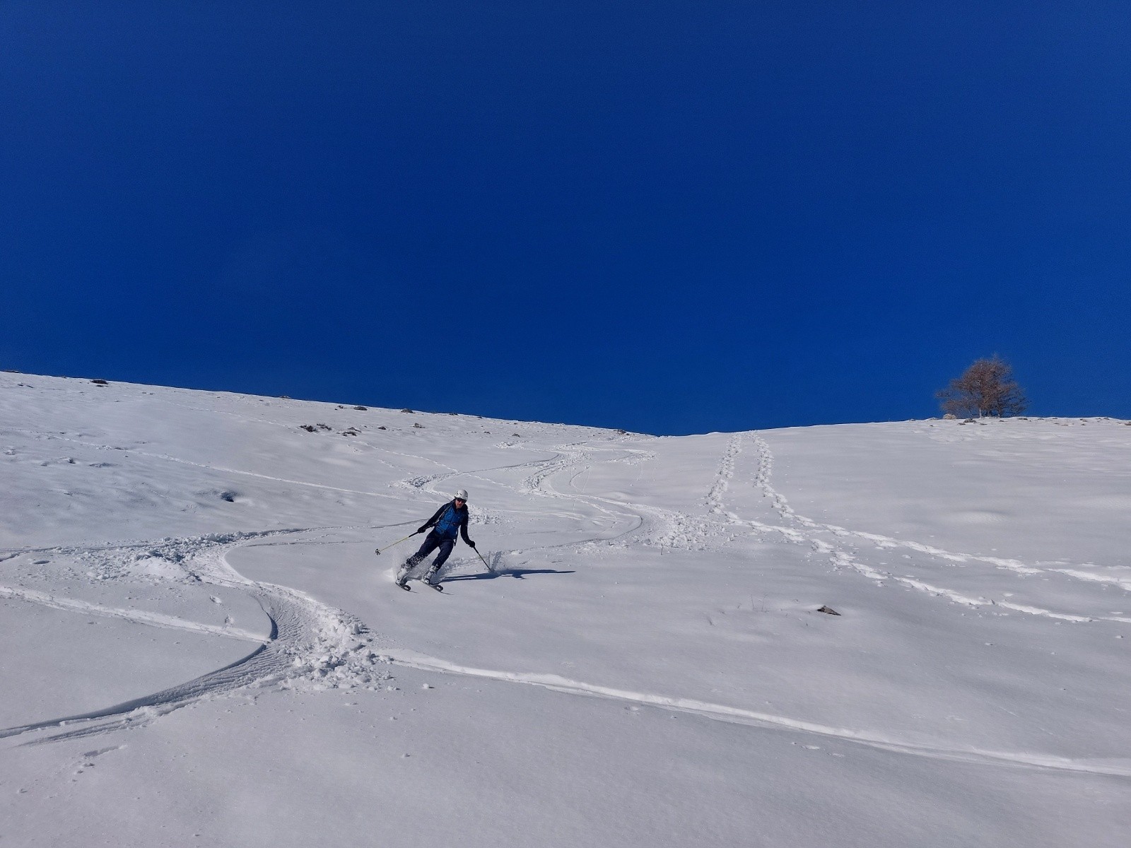 On trouve encore de la poudre au dessus 1700m en Ouest et NE, de la moquette en S et de la transfo vers 12h en E.