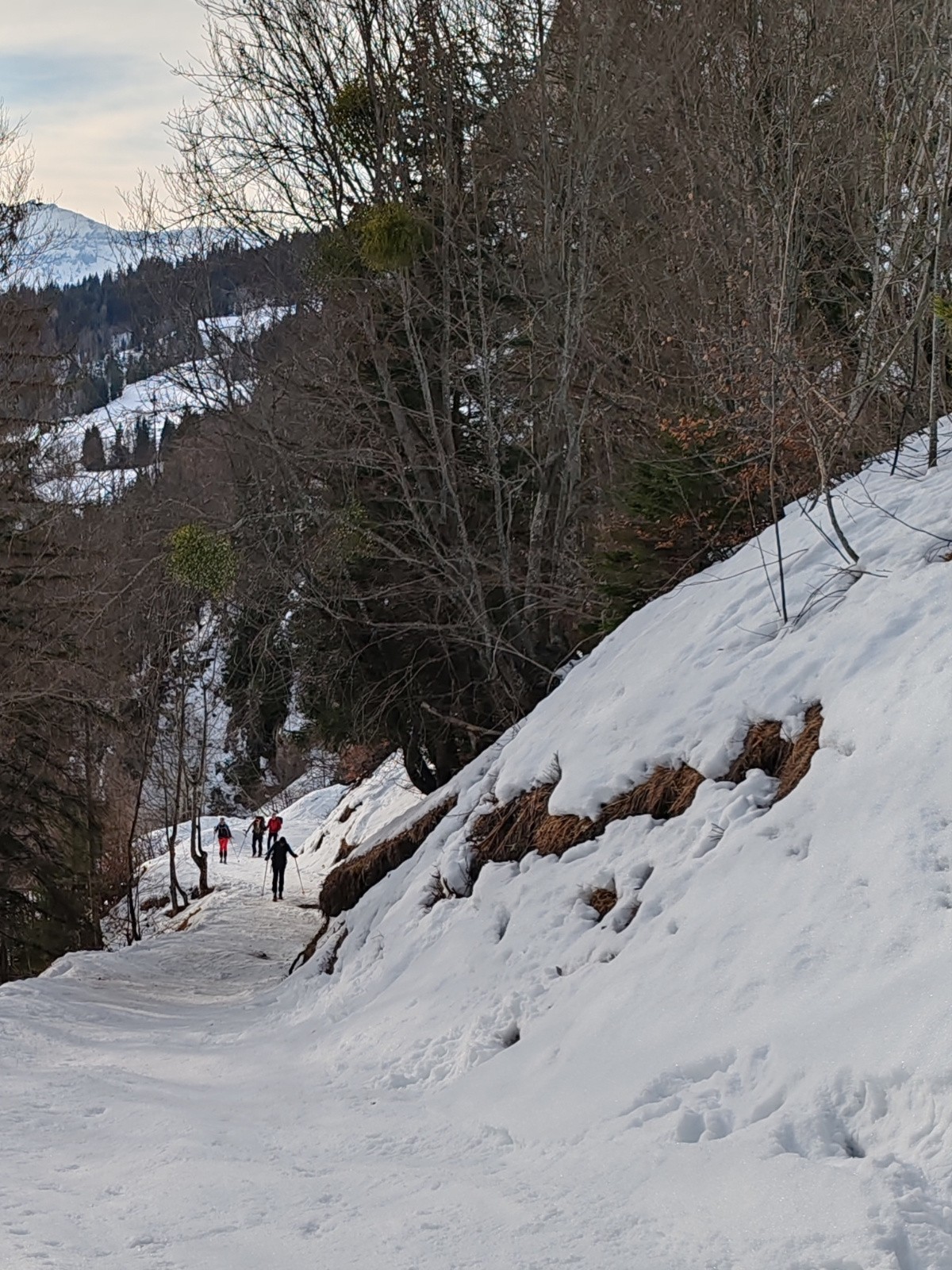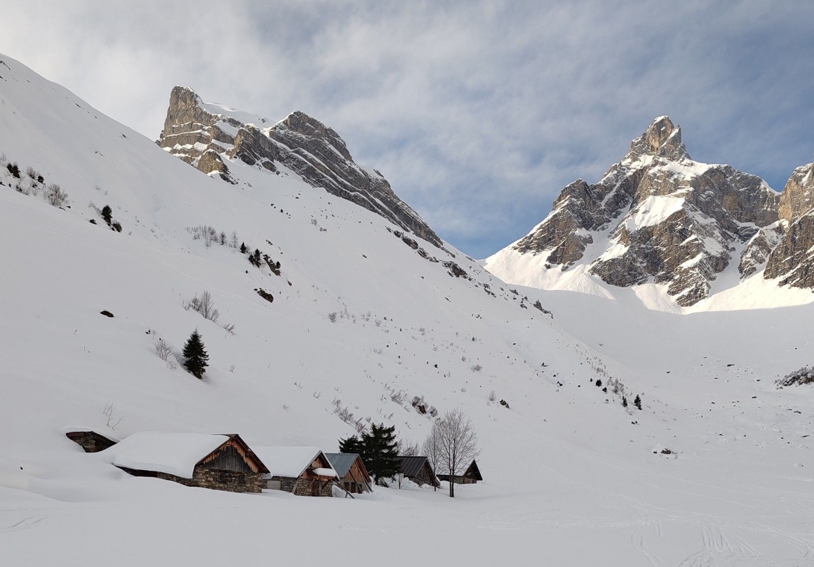 Ce forum ne se fera pas à Davos, mais plutôt sur un sommet emblématique des Aravis. La nappe est mise, elle présente malgré ça quelques plis chaotiques sur le versant nord...d'énormes plaques à vent sont parties sur toute la face.. bref c'est le Vietnam ici.. du grand ski sur toute la descente du versant Est.. jusqu'aux châlets de Doran surpris en pleine hibernation. On rajoute une couche de fantaisie en remontant vers les crêtes de Saix... Histoire d'ajouter 400 m de descente superbe. Retour en zigzag sur le chemin qui mène à Burzier... Qui ne va pas tarder à manquer de neige...