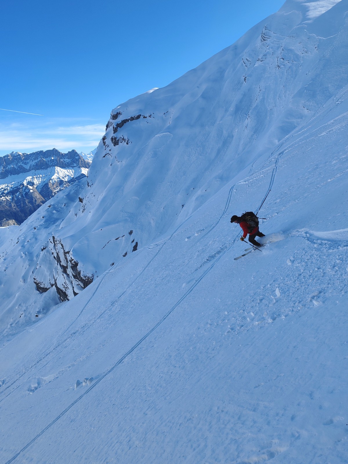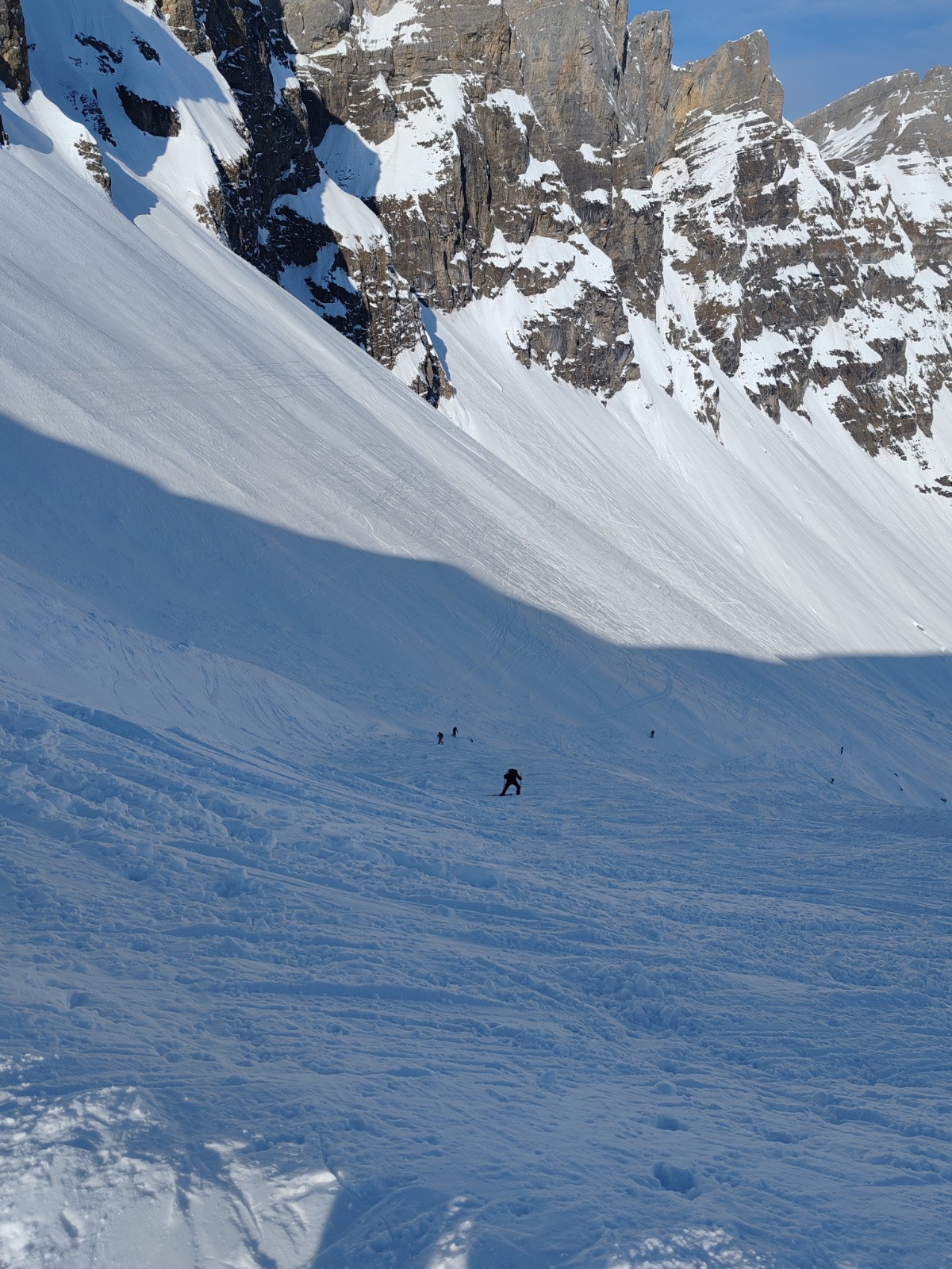 Conditions pour le ski : parfait si on oublie la montée sur le chemin de Doran, le boarder cross est bien fatigué..la face N est purgée.. !