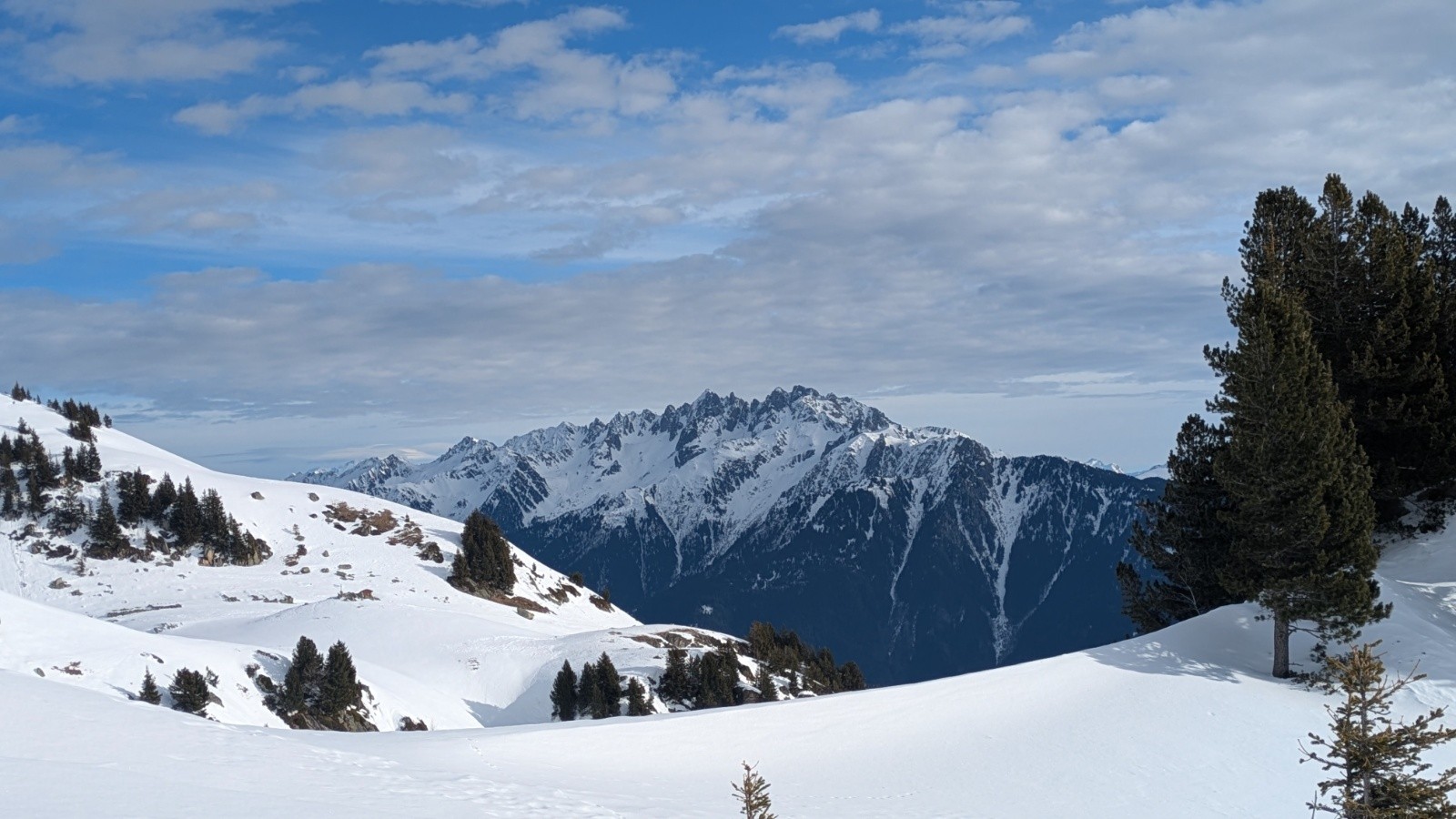 Conditions pour le ski : En nord et Est, il y a un fond dur surmonté de 5 à 10 cm de fraîche parfois soufflé, assez agréable