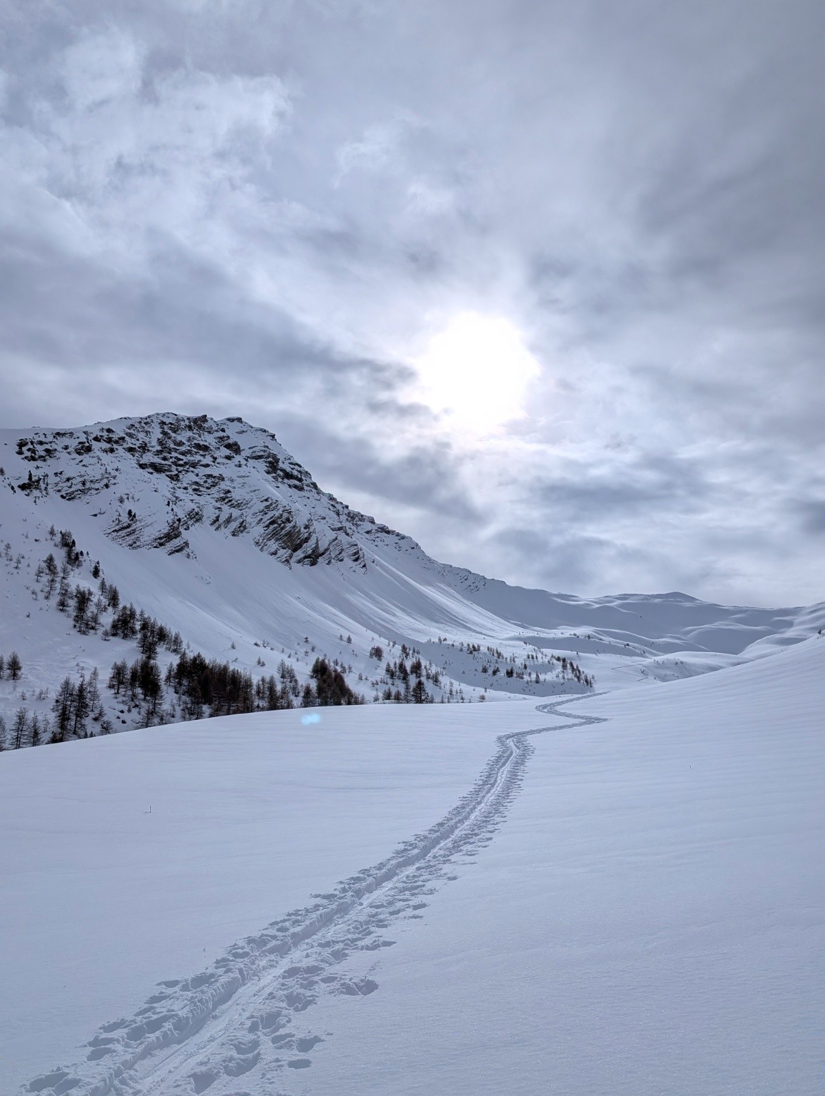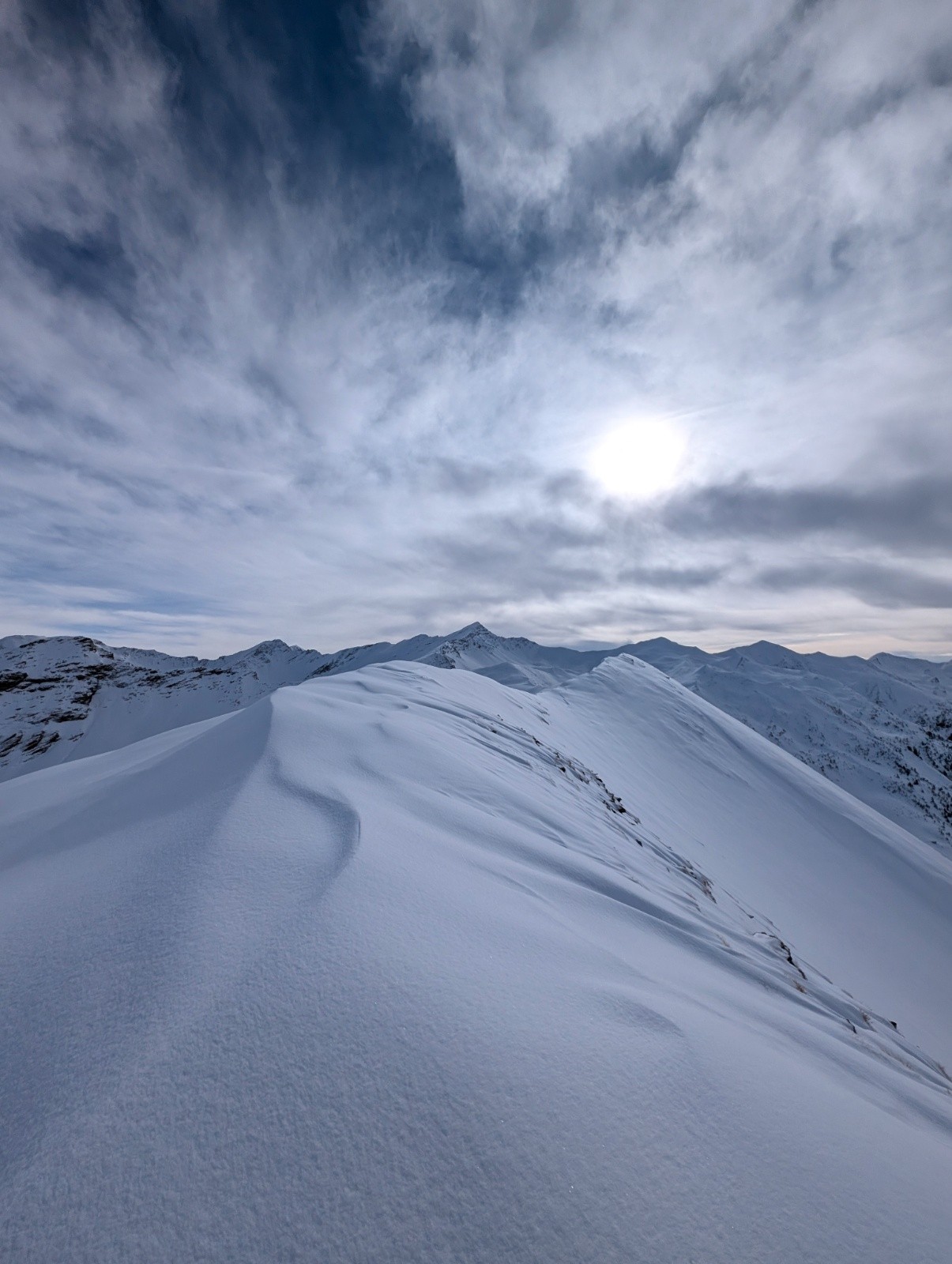 Météo/températures : -5 au départ ,neige fraîche tombé pendant la nuit , nuageux mais ça ne gêne pas ,du vent sur les crêtes par contre