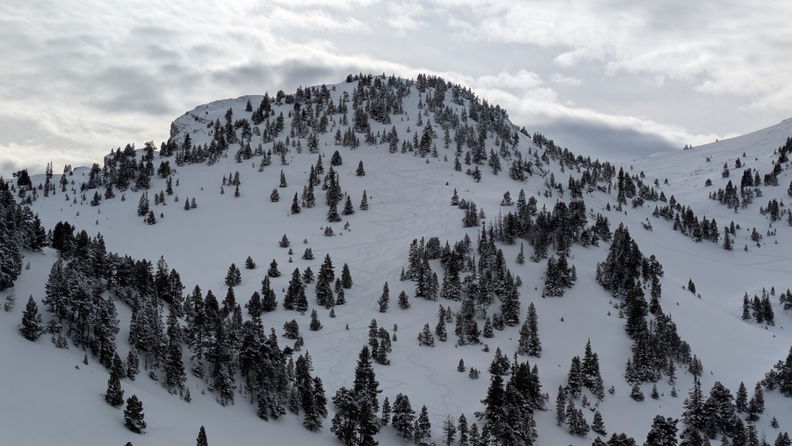 Météo/températures : -5 au parking en partant, 2 au retour. Un peu de vent mais pas gênant, Soleil voilé mais pas trop d'effet jour Blanc