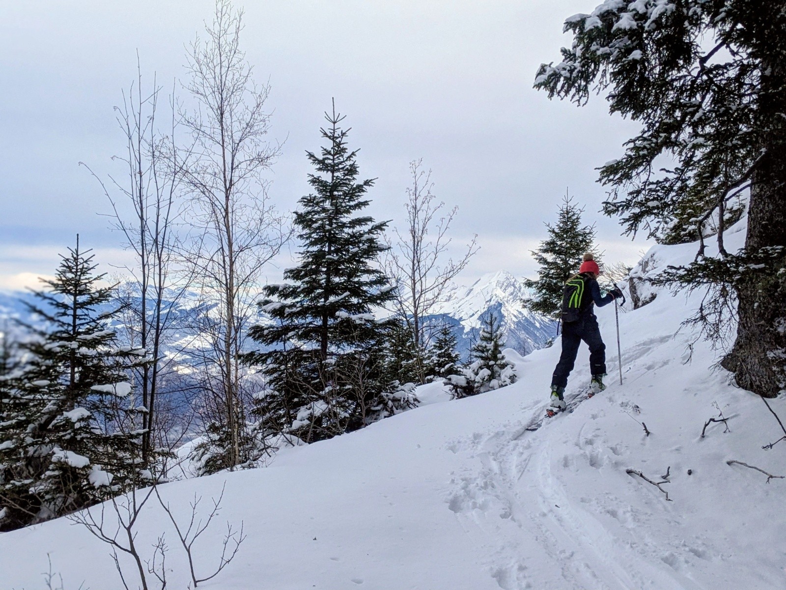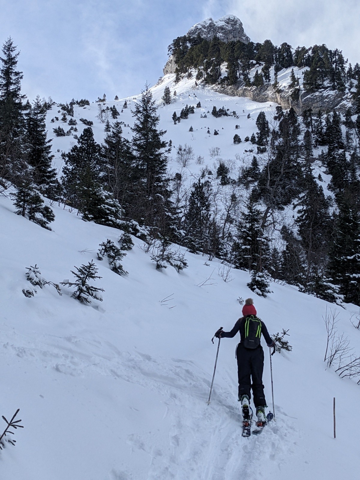Conditions pour le ski : 10 a 15cm tombé dans la nuit sur un fond assez irrégulier mais pas pire. Trace de rando pour la montée en bonne condition. Ca ski bien partout en faisant un peu attention aux cailloux en bas.