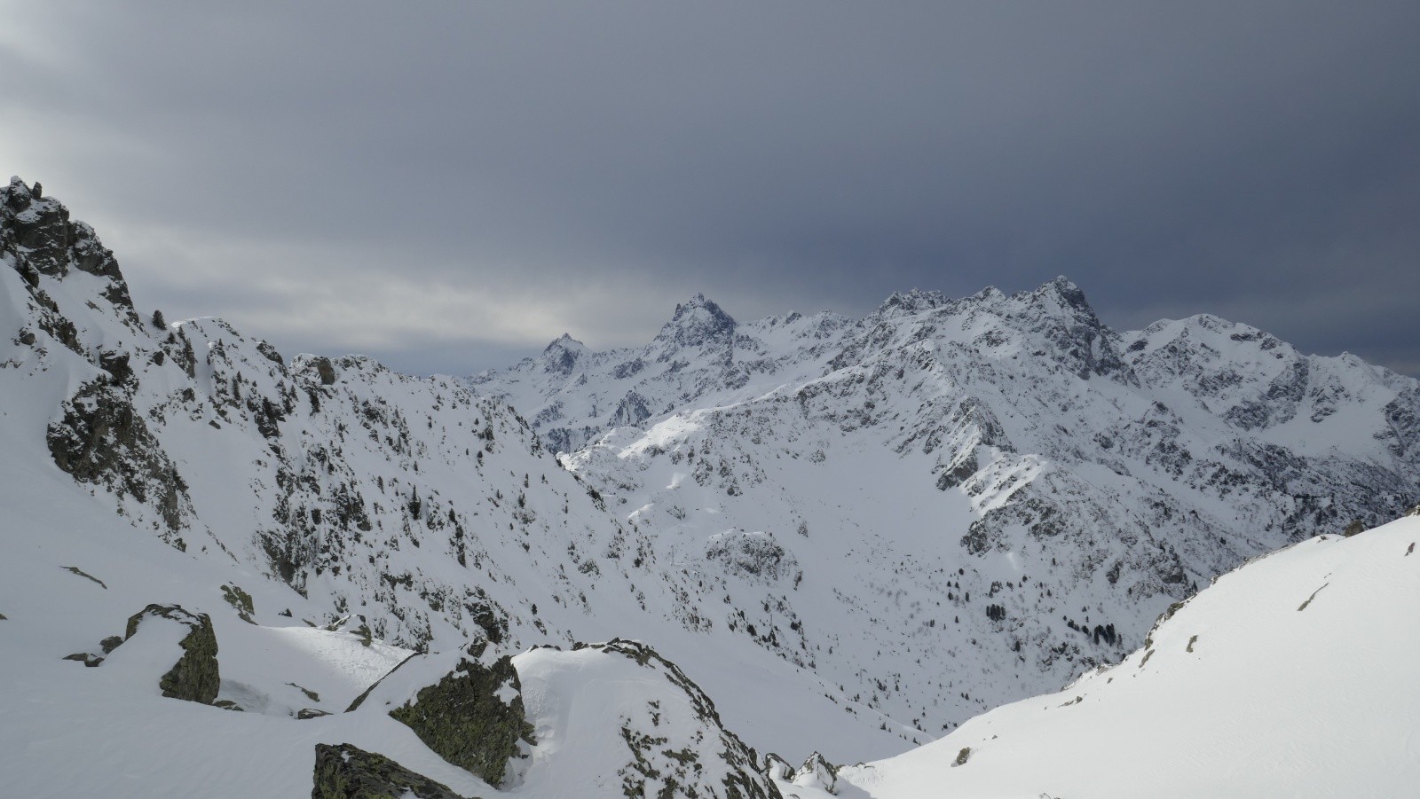 On repeaute, deuxième fois. La trace démarre de plus bas, du coup Fred trace pour rejoindre plus haut. On sourira en voyant les deux miss collants pipettes devant nous, prêtes un peu avant, ne pas faire la trace et aller chercher bien plus bas l'existante. On se recroisera pile à la jonction. Les éclaircies se maintiennent. Paysage bien sympa. La trace au dessus est au top, beaucoup de conversions et pas raide du tout.