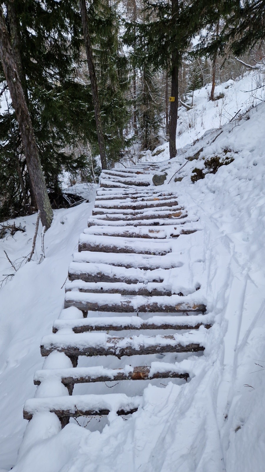 La montée balisée est d'abord plutôt cool puis assez pénible. De courtes montées raides, entrecoupées de petits replats.