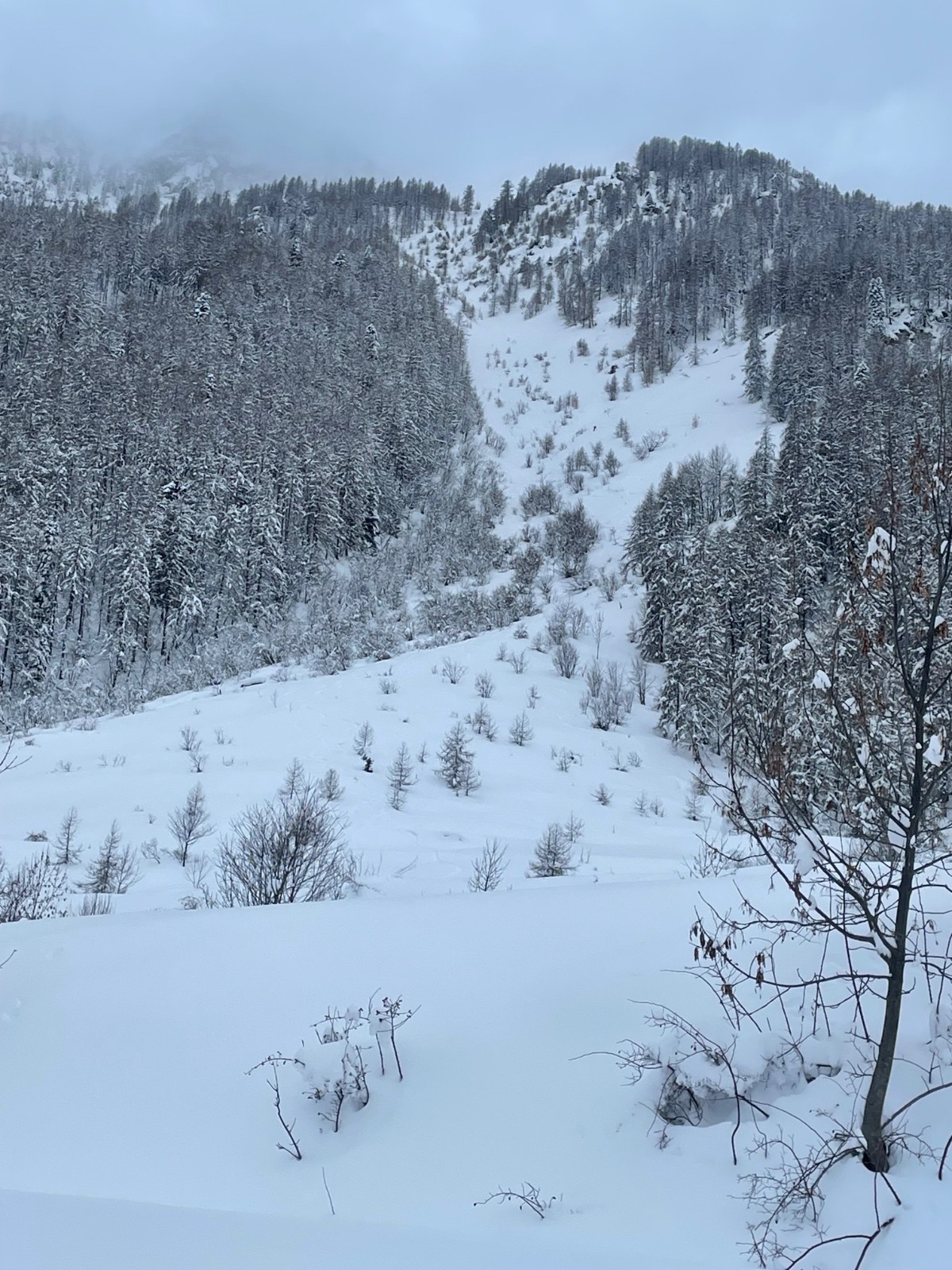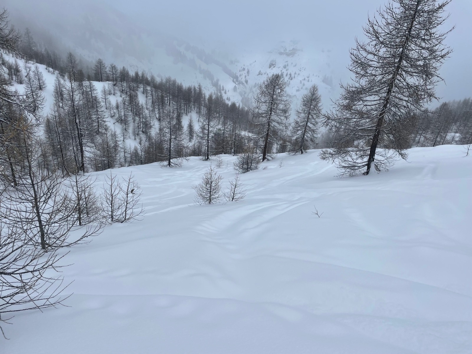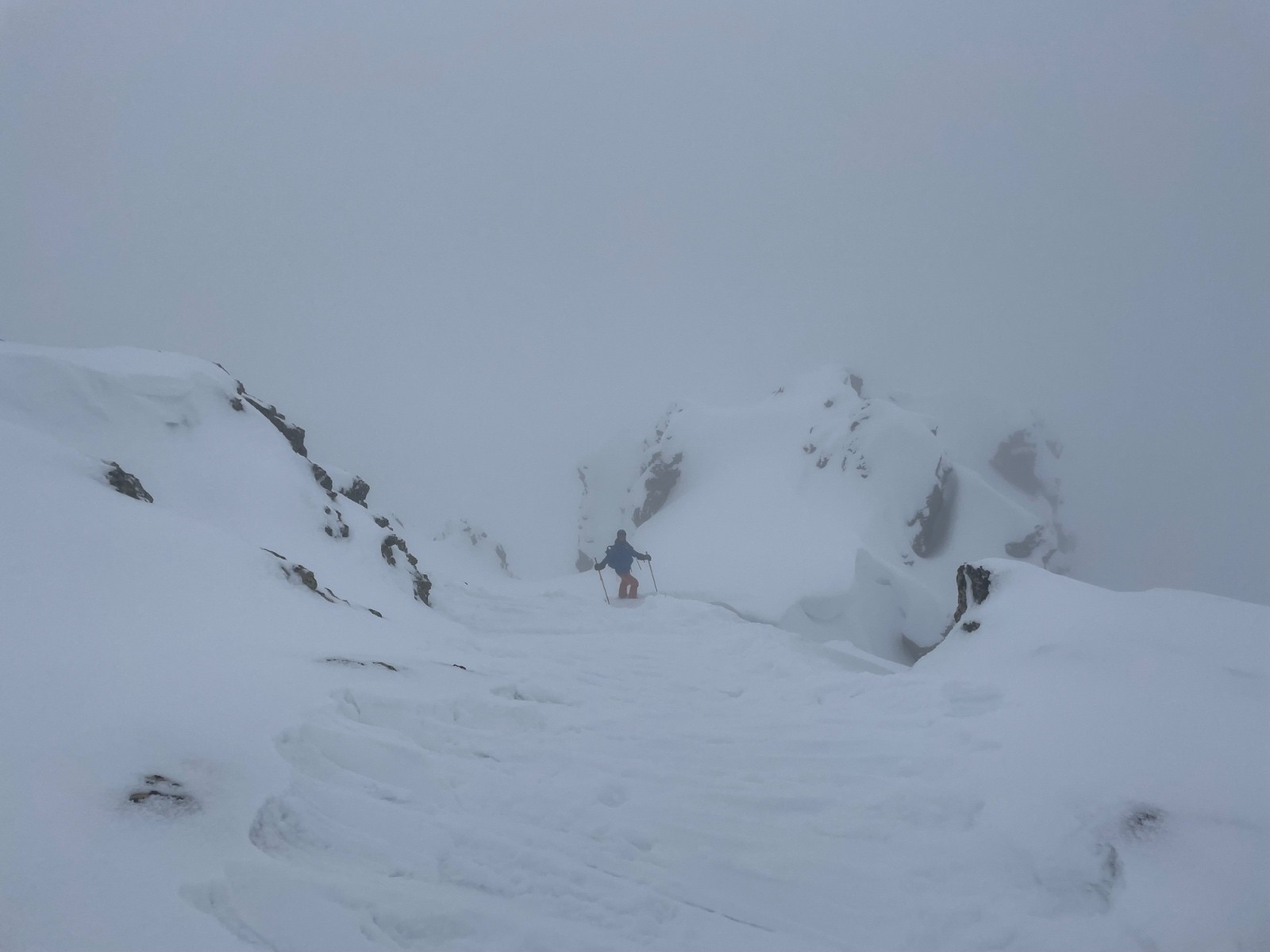 Pour la visibilité : plafond 2200m, du coup le couloir N de Bassura était sans visibilité : jour blanc complet