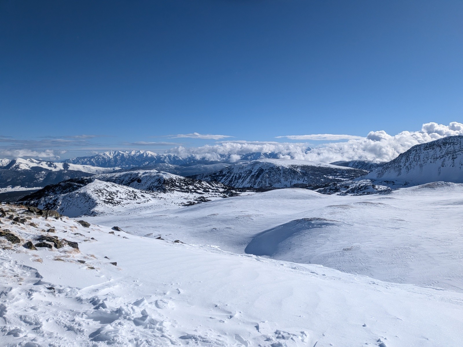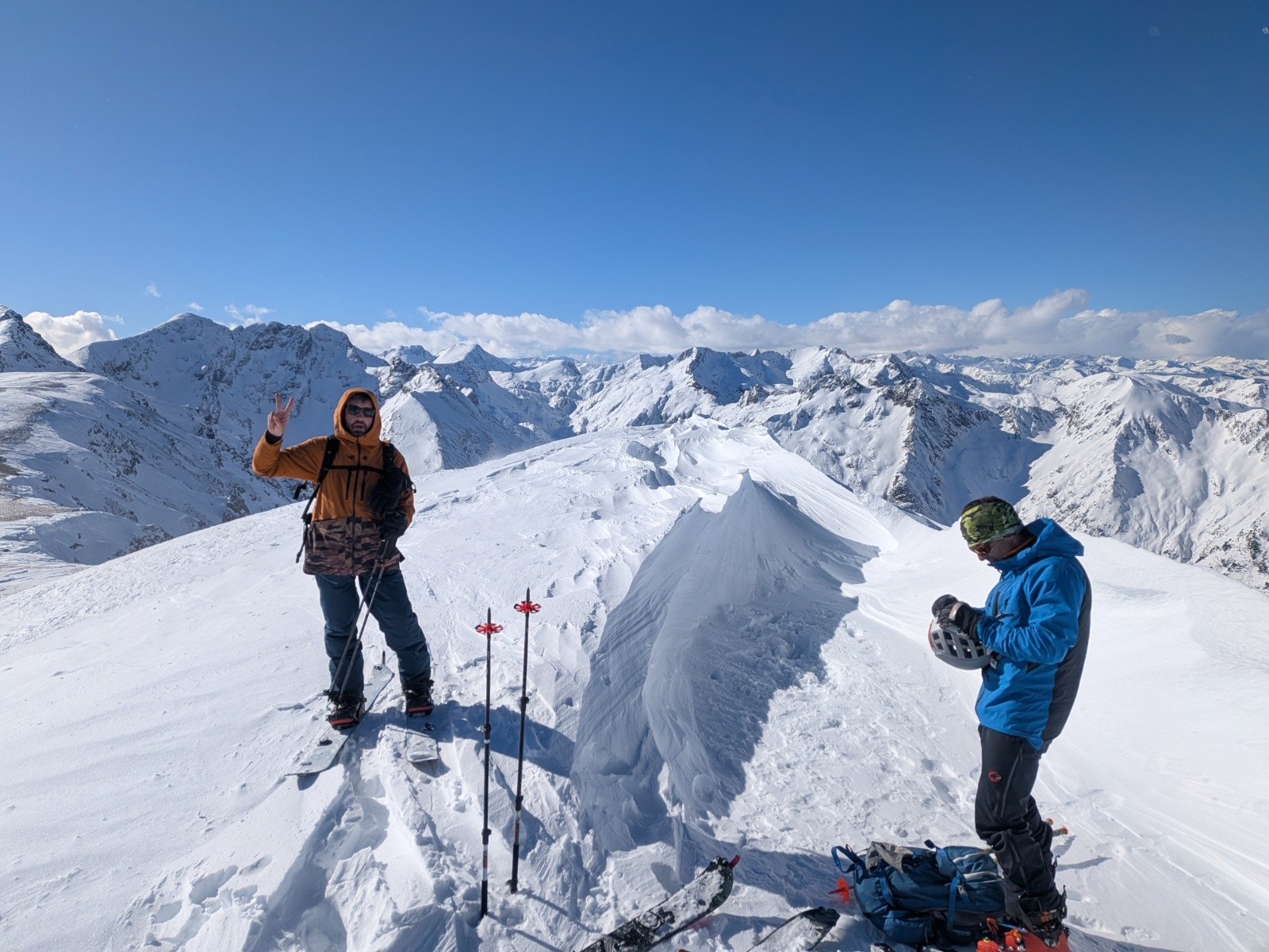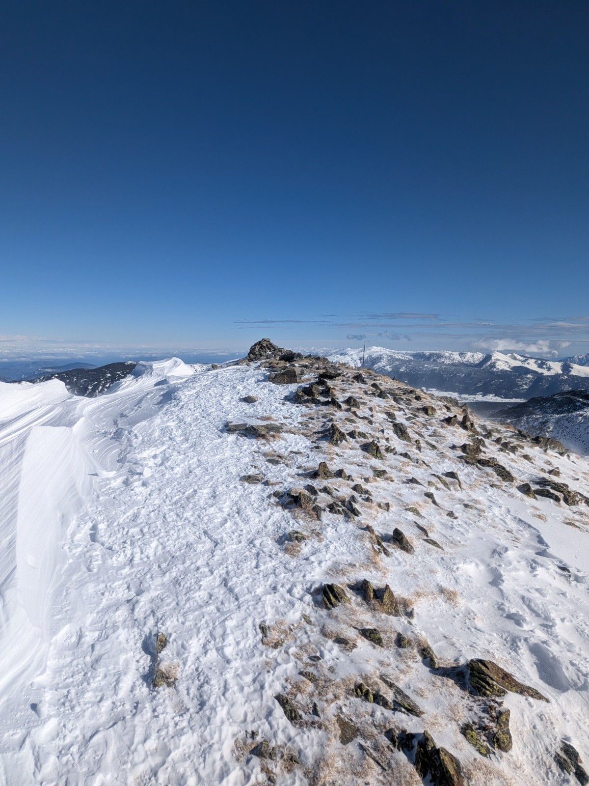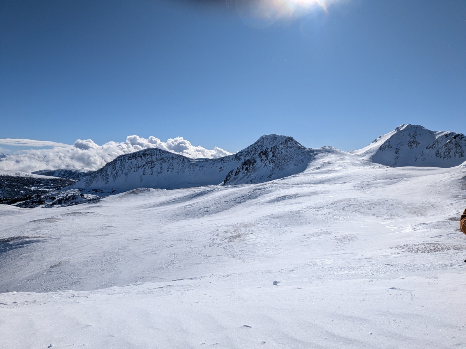 Conditions pour le ski : Pas mal dans les combes protégées par le vent 🤩 Sinon neige crouté soufflée. Mais y a de la neige pour bien s'amuser