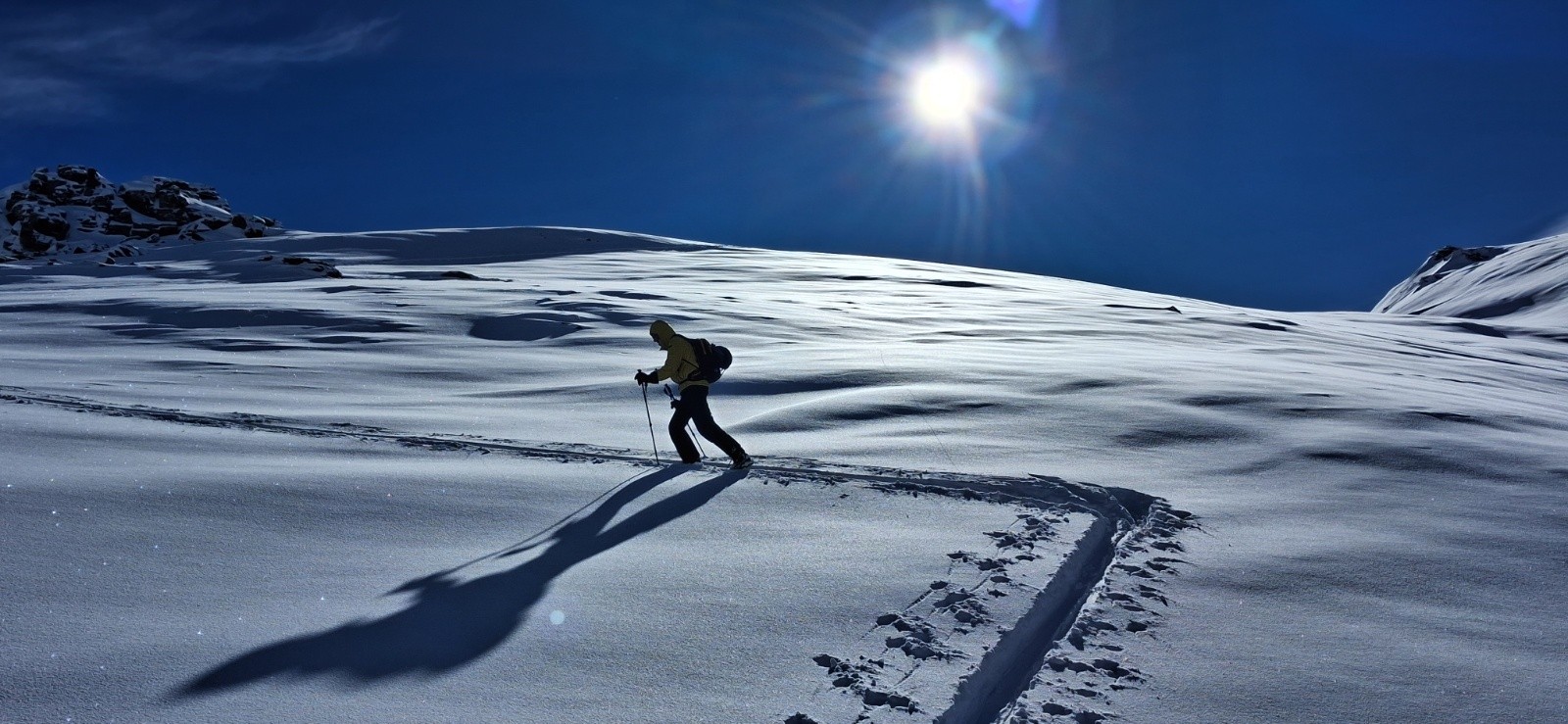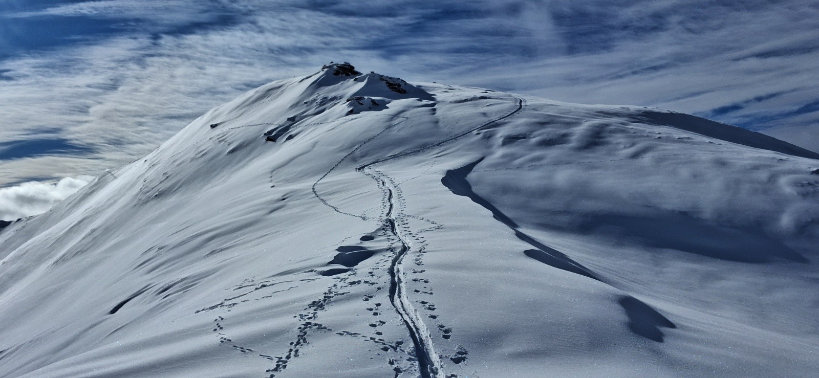 En revanche faire la trace fut assez épuisant. Heureusement un trio de 3 skieurs nous a rejoins vers 2500m. Ils nous ont gentiment proposé de continuer la trace jusqu'au sommet. Merci à eux.