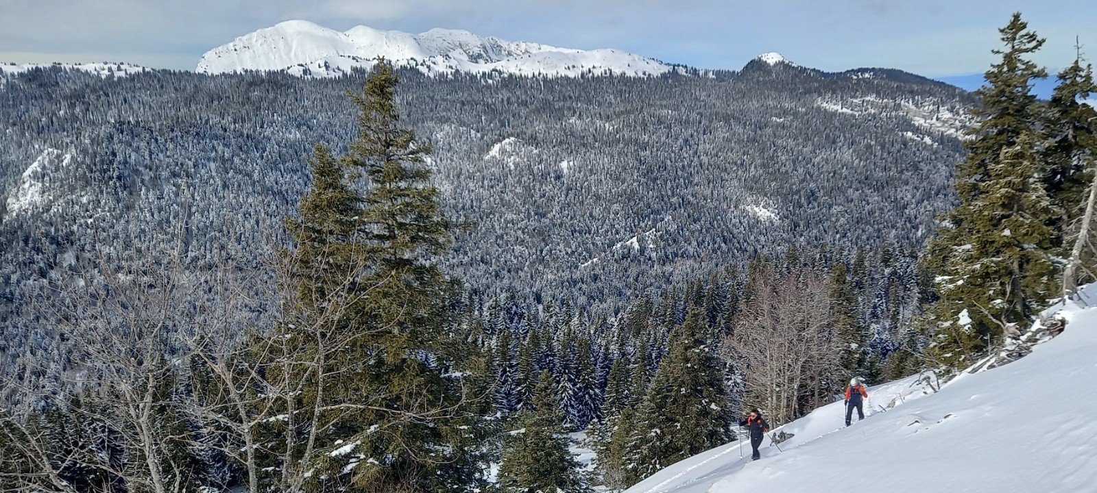 Conditions pour le ski : très très correctes: forêt en orientation Nord en poudre (on sent parfois le fond dur, mais pas gênant pour se faire plaiz) / l'ancienne piste le long du télésiège commence à marquer (bosses, et fond dur partout): ça zippe parfois un peu à la montée, mais ça se descendait pas mal / retour skis aux pieds jusqu'en bas en étant attentif à la fin...